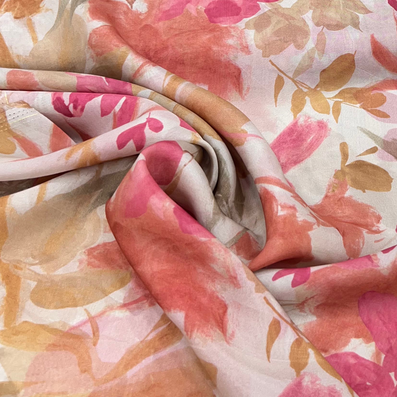 Organza is a lightweight, sheer fabric with a crisp finish, perfect for creating elegant sarees, gowns, and couture designs. Its subtle transparency and fine texture bring a refined, luxurious touch to any ensemble