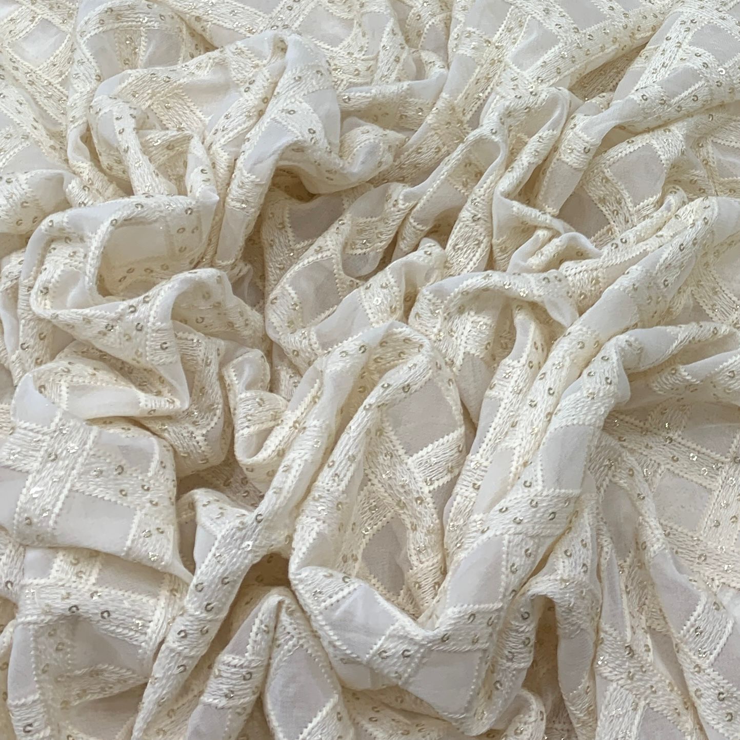 Georgette embroidered fabric is lightweight, flowy, and stylish, perfect for both men's and women's fashion. Ideal for sarees, gowns, lehengas, kurtis, dupattas, sherwanis, and jackets, its soft drape adds elegance, making it a refined choice for weddings, festivals, and special occasions