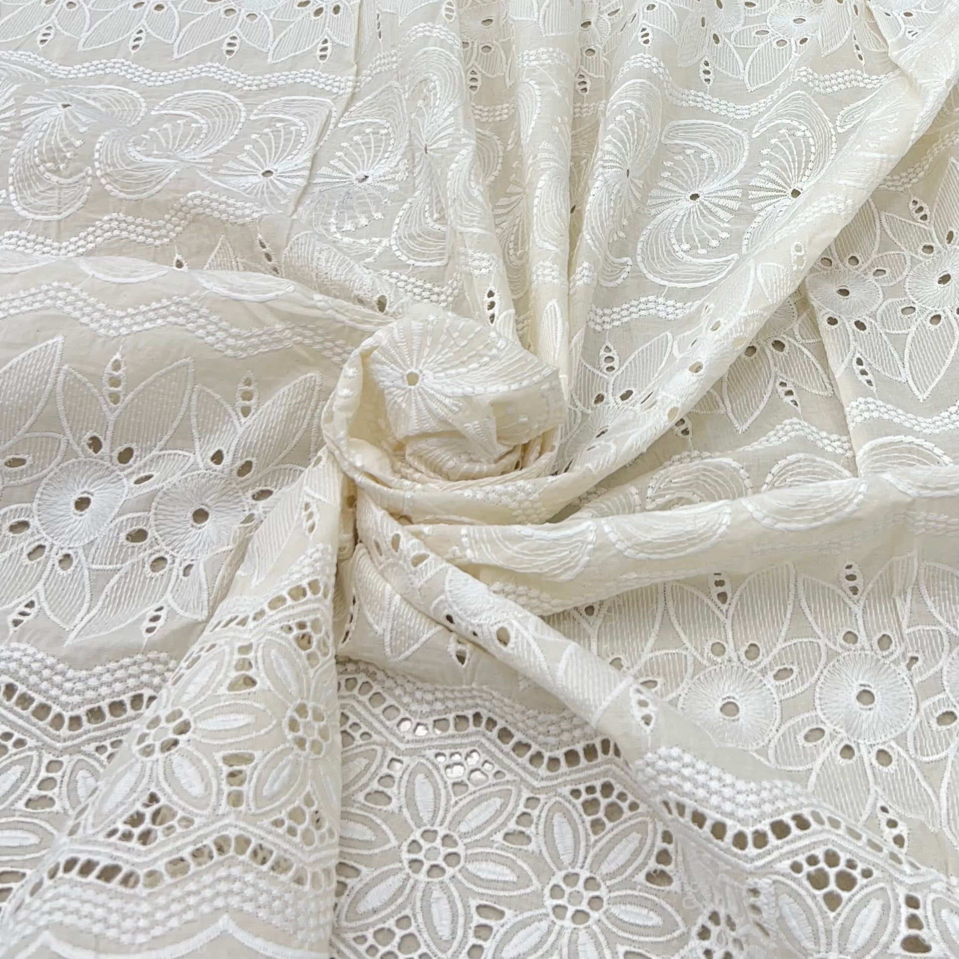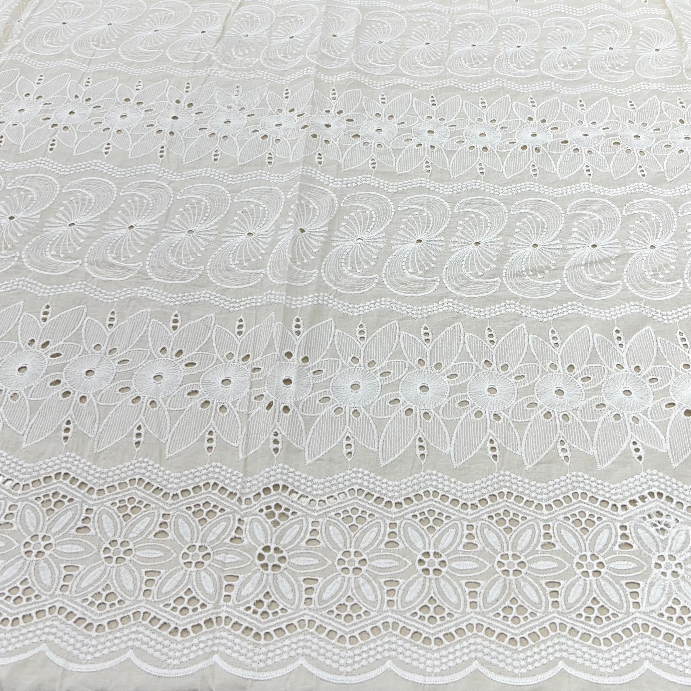 Off White Cotton Cut Work Daman Embroidery