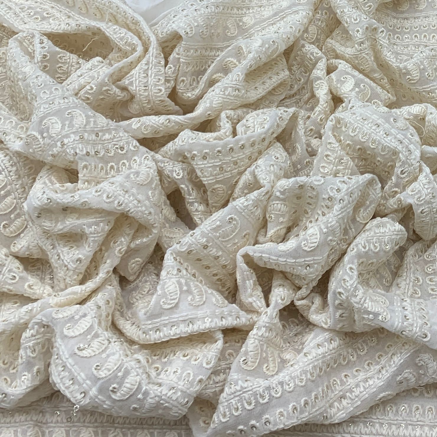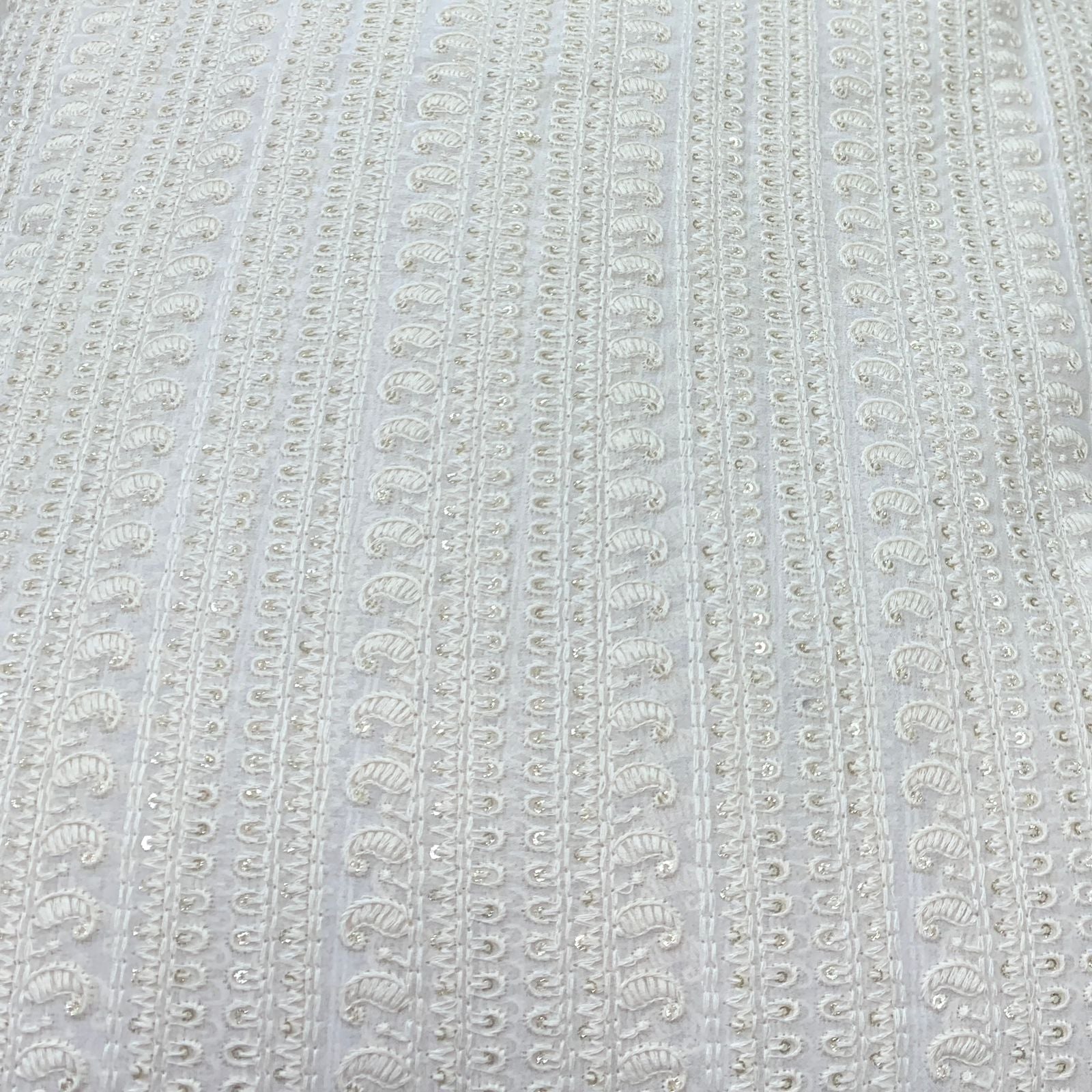 Georgette embroidered fabric is lightweight, flowy, and stylish, perfect for both men's and women's fashion. Ideal for sarees, gowns, lehengas, kurtis, dupattas, sherwanis, and jackets, its soft drape adds elegance, making it a refined choice for weddings, festivals, and special occasions