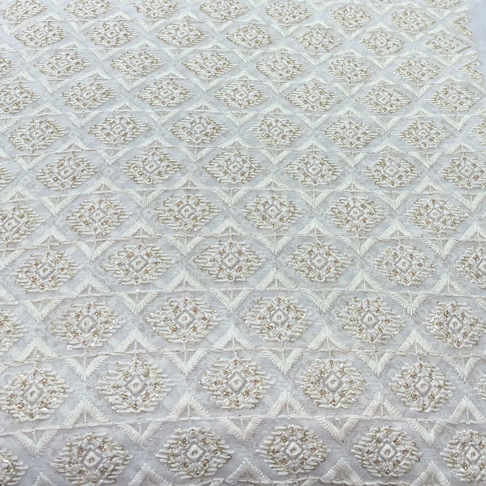 Off White Georgette Symmetrical Embroidery
