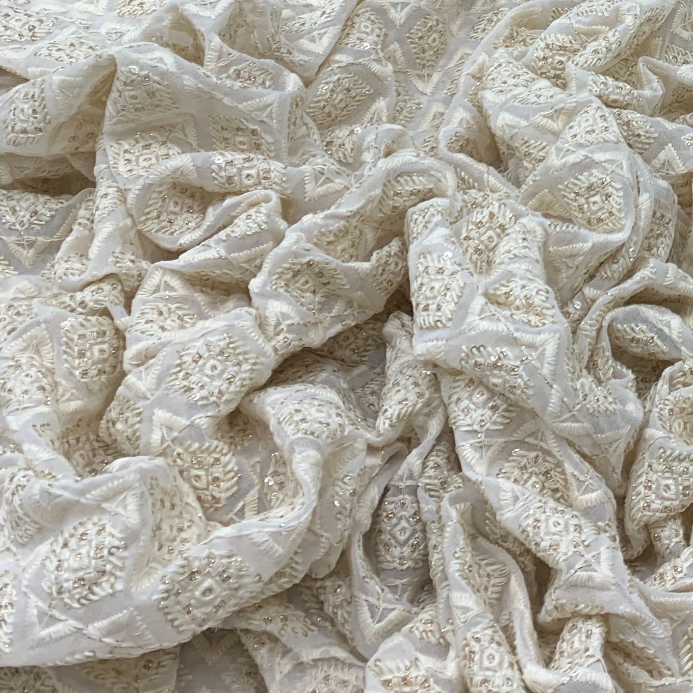 Georgette embroidered fabric is lightweight, flowy, and stylish, perfect for both men's and women's fashion. Ideal for sarees, gowns, lehengas, kurtis, dupattas, sherwanis, and jackets, its soft drape adds elegance, making it a refined choice for weddings, festivals, and special occasions