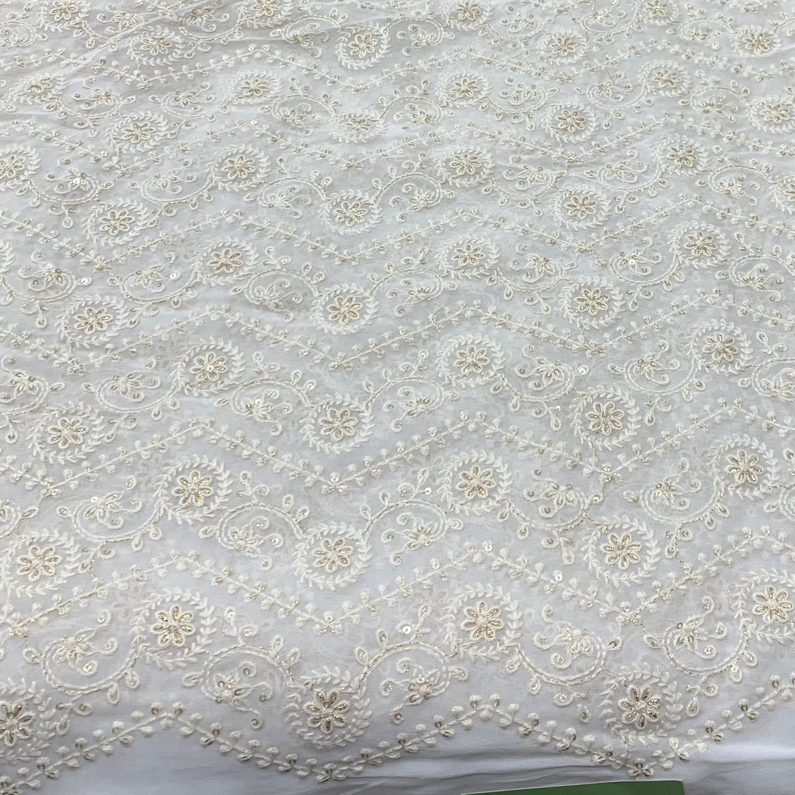 Georgette embroidered fabric is lightweight, flowy, and stylish, perfect for both men's and women's fashion. Ideal for sarees, gowns, lehengas, kurtis, dupattas, sherwanis, and jackets, its soft drape adds elegance, making it a refined choice for weddings, festivals, and special occasions