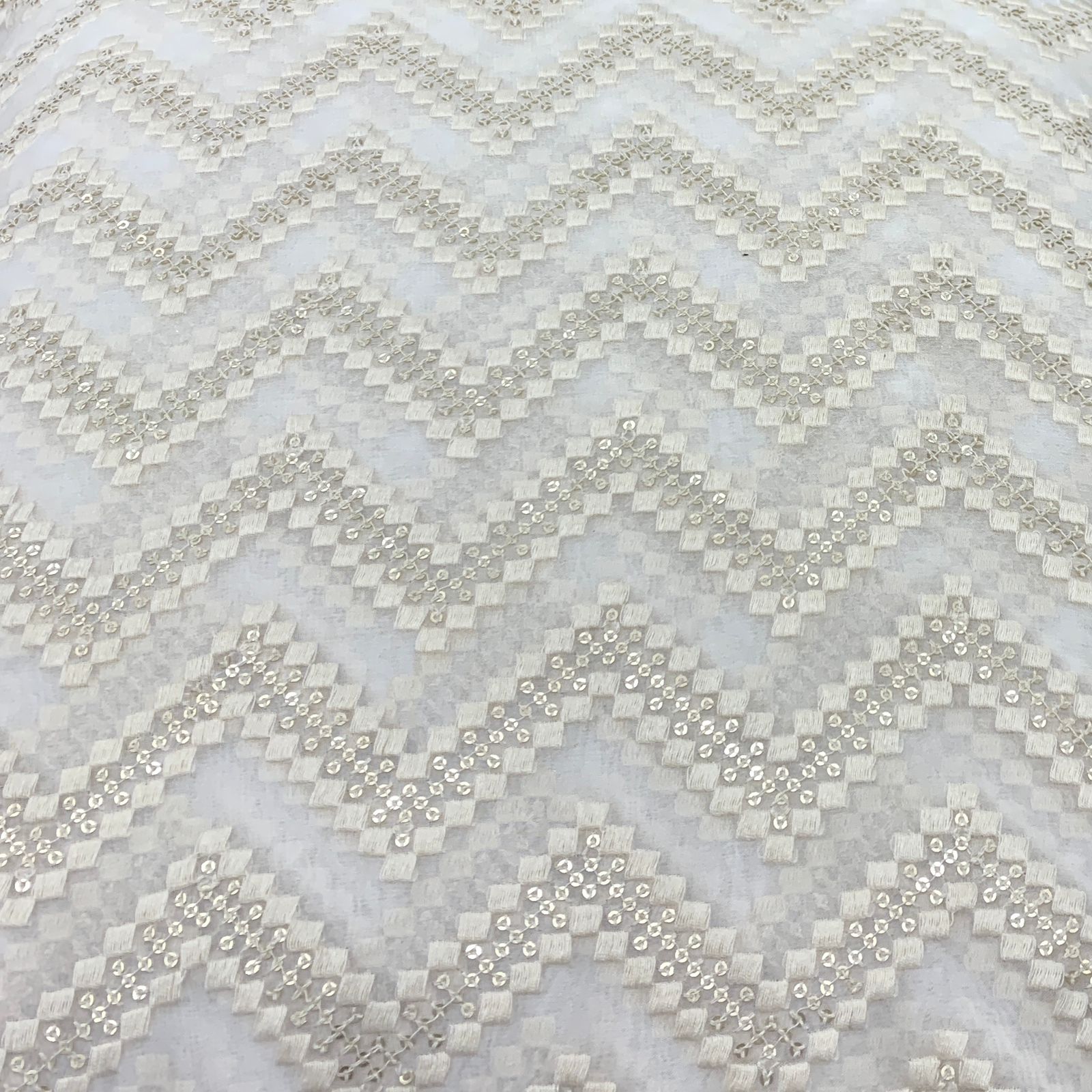 Off White Gold Wave Sequins Thread Georgette Embroidery