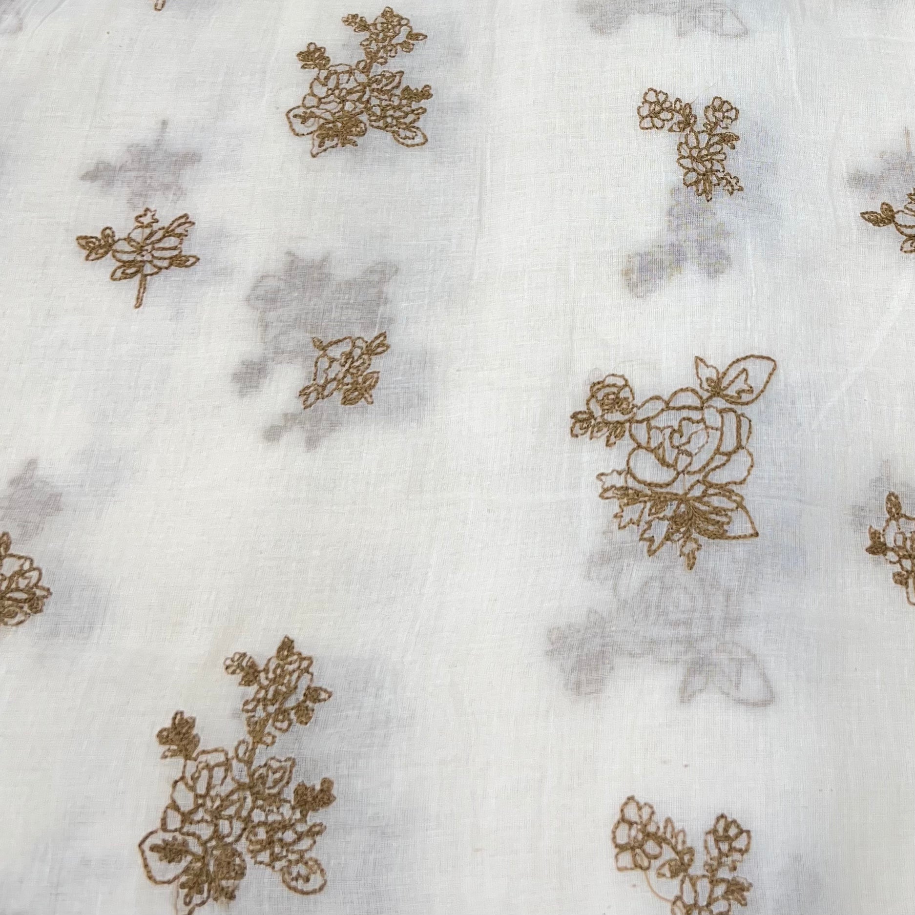 Off White Mustard Yellow Flower Cotton Thread Embroidery