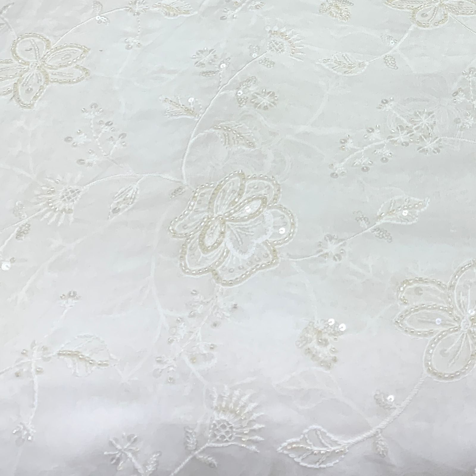 Georgette embroidered fabric is lightweight, flowy, and stylish, perfect for both men's and women's fashion. Ideal for sarees, gowns, lehengas, kurtis, dupattas, sherwanis, and jackets, its soft drape adds elegance, making it a refined choice for weddings, festivals, and special occasions