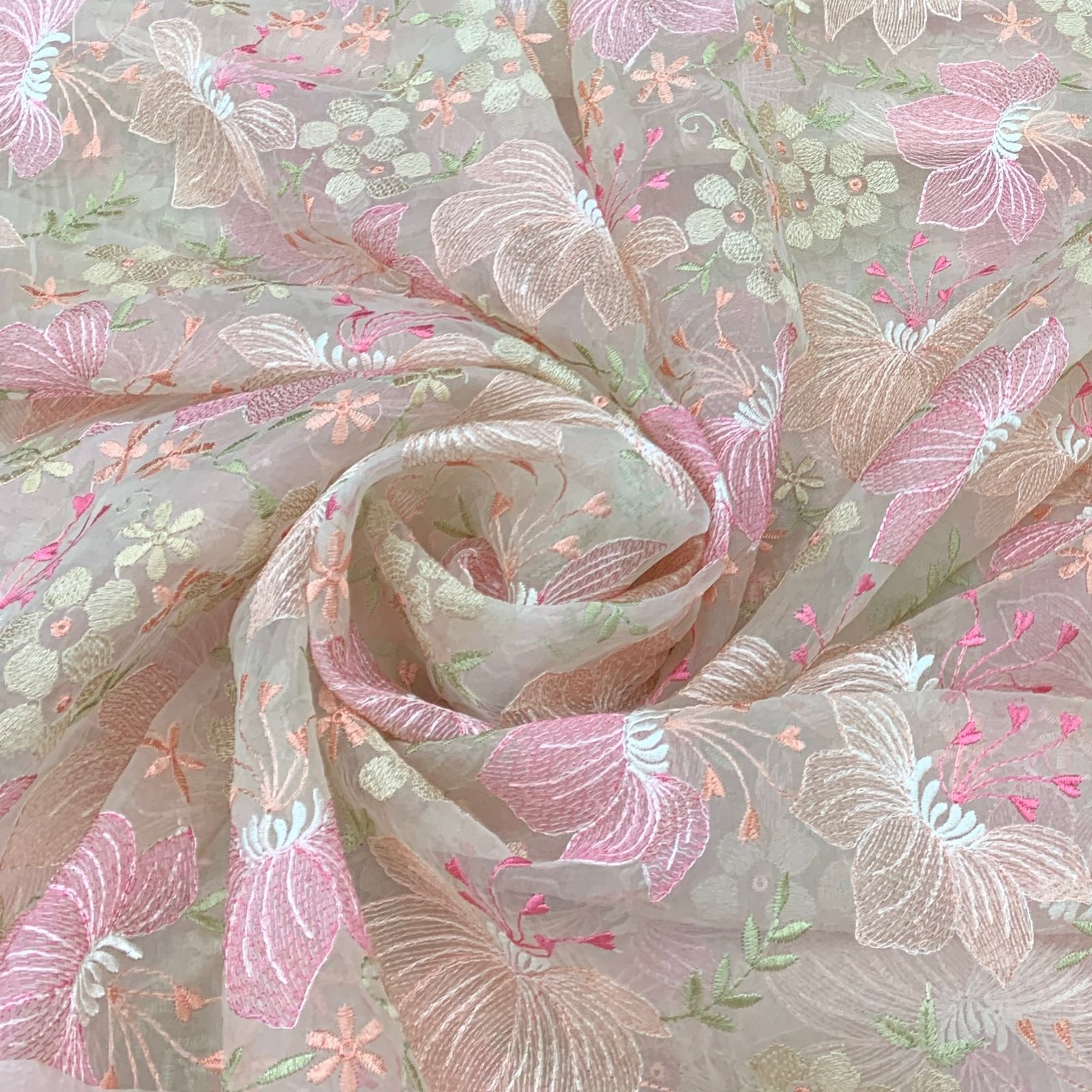 Organza is a lightweight, sheer fabric with a crisp finish, perfect for creating elegant sarees, gowns, and couture designs. Its subtle transparency and fine texture bring a refined, luxurious touch to any ensemble