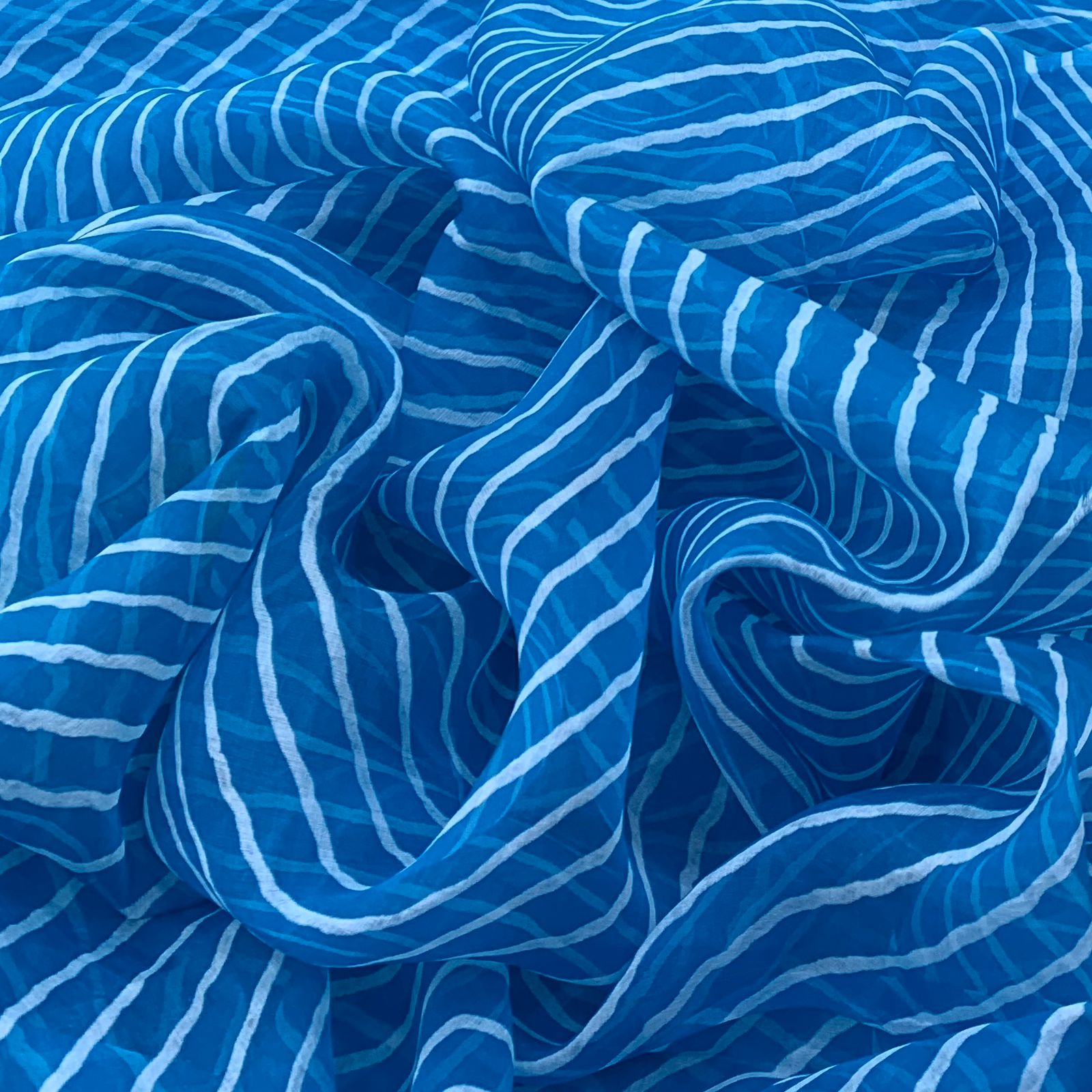Organza is a lightweight, sheer fabric with a crisp finish, perfect for creating elegant sarees, gowns, and couture designs. Its subtle transparency and fine texture bring a refined, luxurious touch to any ensemble
