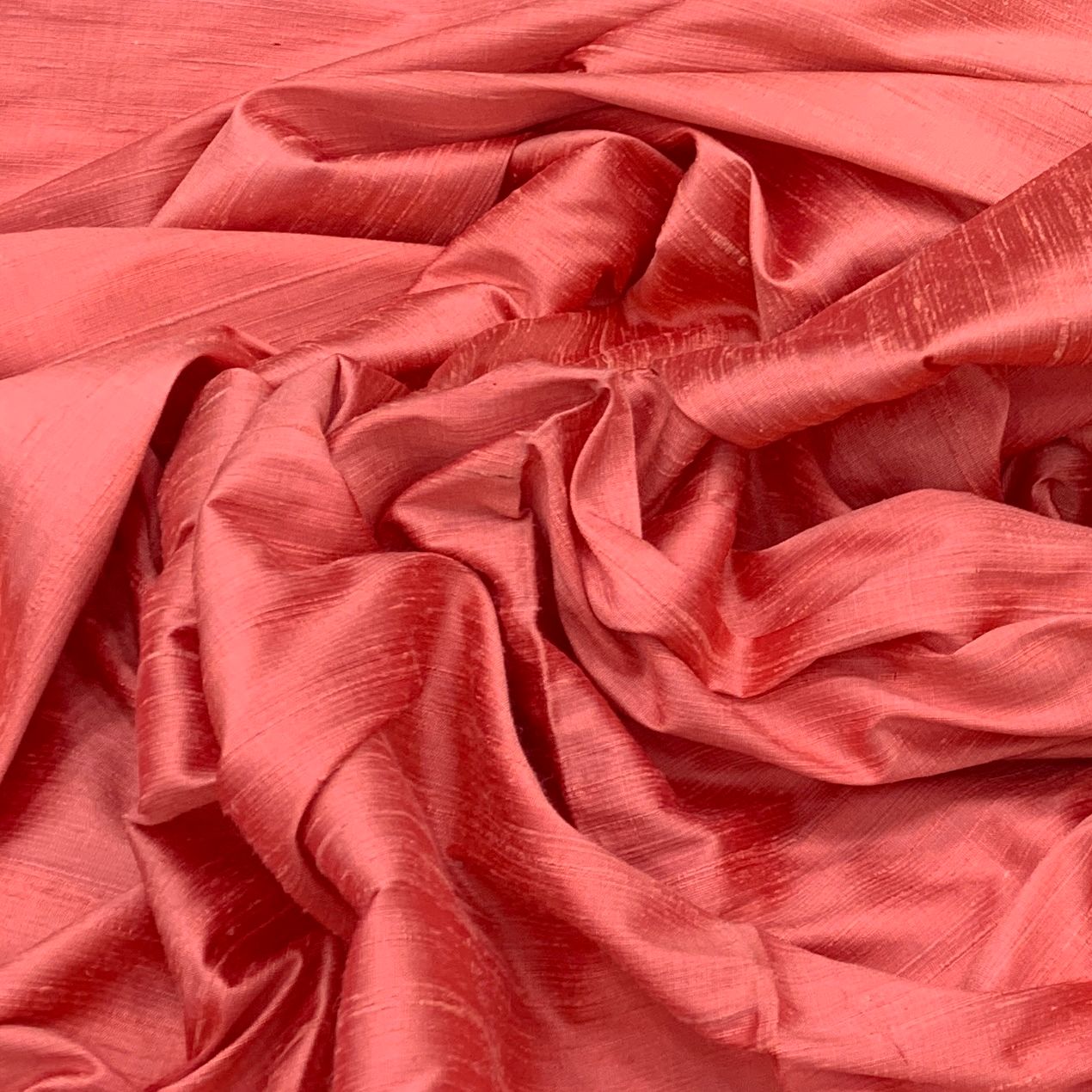 Peach Plain Raw Silk Fabric. Continuous filaments of silk, with no twist, which have been reeled from cocoons but are unprocessed and comes with a slub effect. Raw Silk has a nubby feel with a low sheen. It resembles cotton in surface texture and sews easily. When these short fibers are spun into yarns, the resulting yarns have occasional slubs and specks that add to its appeal. Nubs vary between different weaves. Sportier in appearance, Raw Silk has the look of hopsack but is much softer.