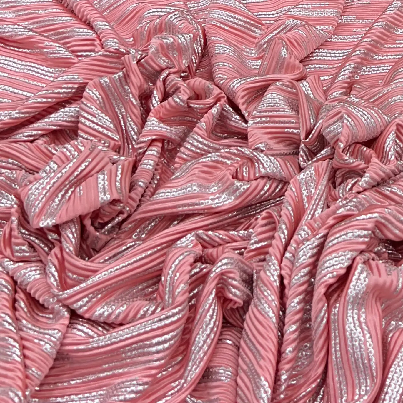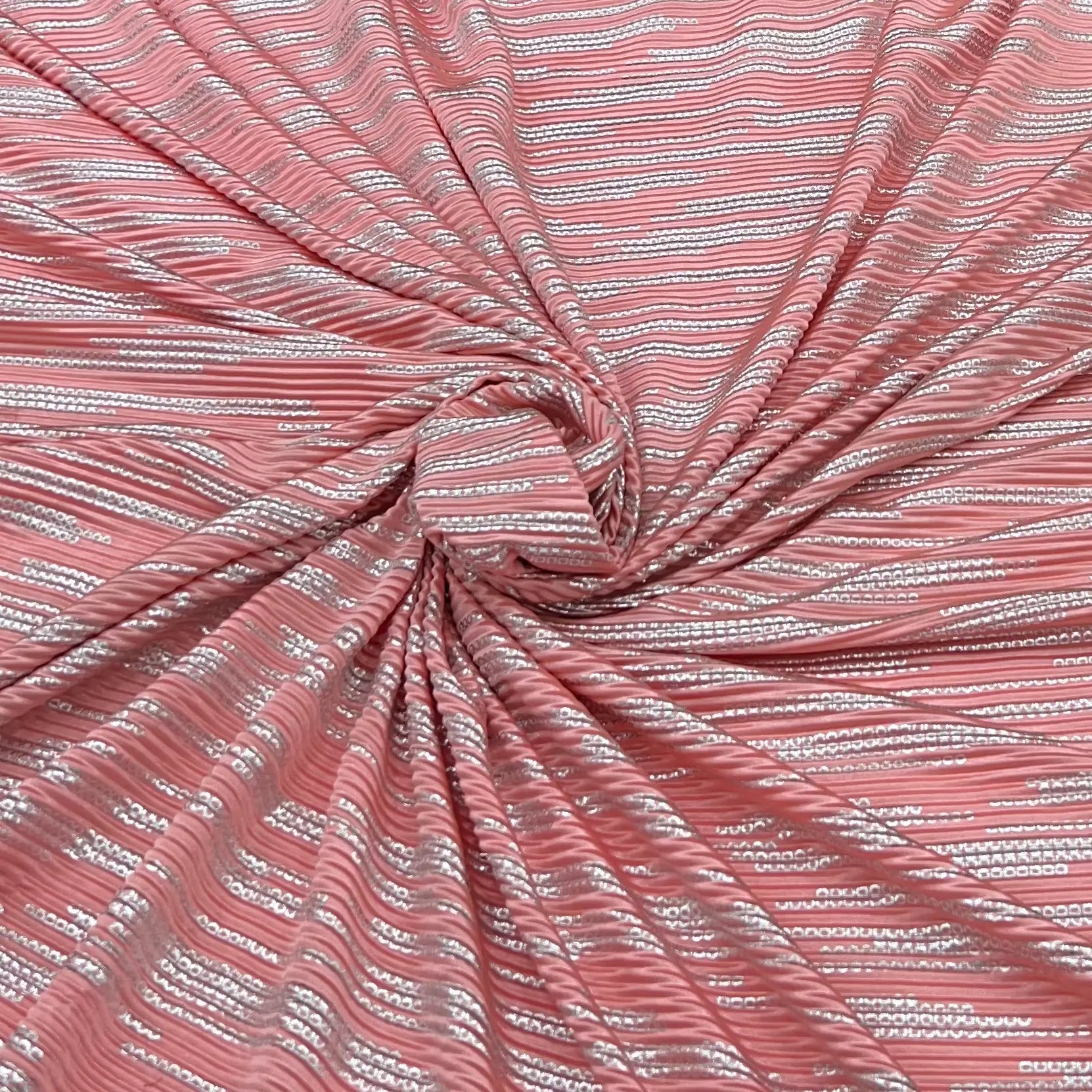 Pleated satin fabric combines a silky sheen with finely pressed folds, creating a luxurious texture that reflects light beautifully. Smooth and fluid, it drapes elegantly, making it ideal for skirts, dresses, blouses, and eveningwear. Composition: 100% polyester fabric