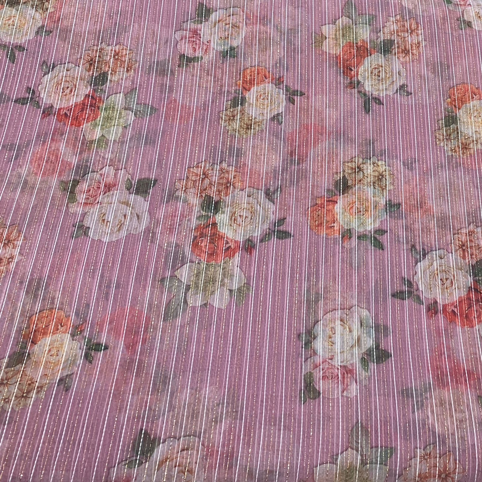 Organza is a lightweight, sheer fabric with a crisp finish, perfect for creating elegant sarees, gowns, and couture designs. Its subtle transparency and fine texture bring a refined, luxurious touch to any ensemble