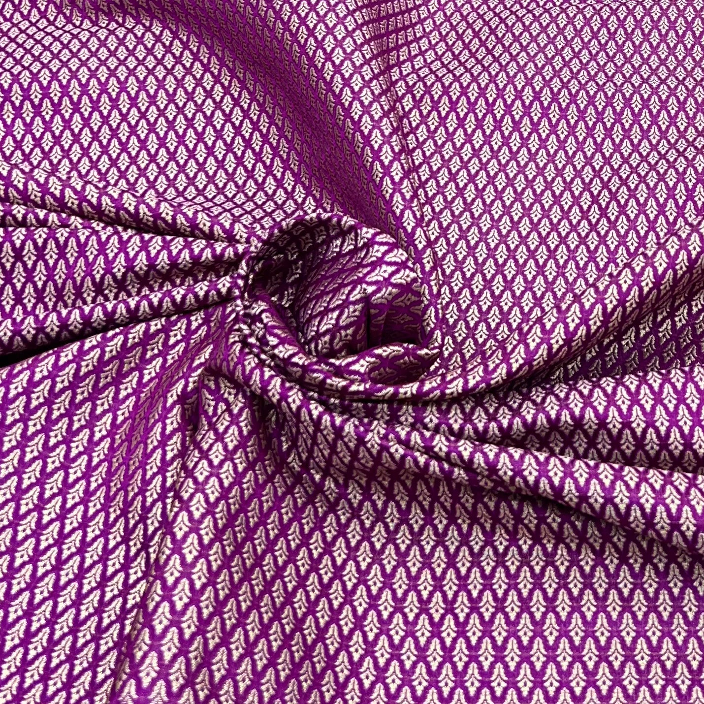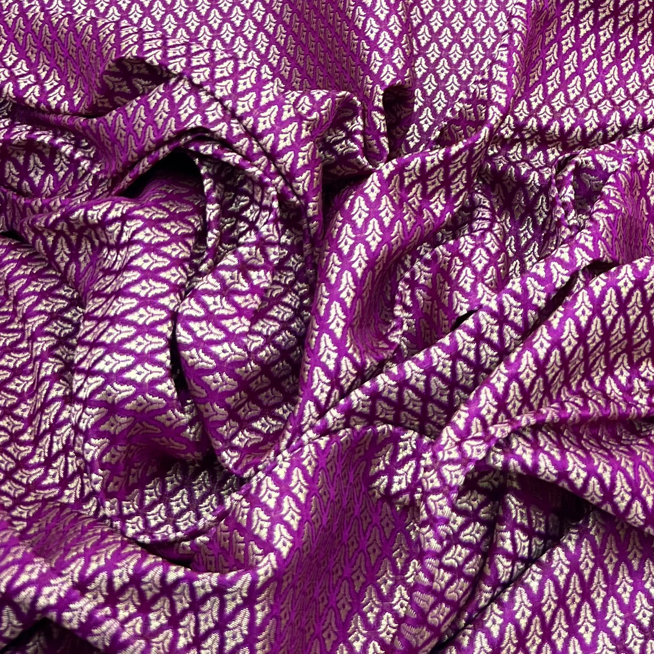 Silk brocade is an opulent fabric crafted with elaborate designs in silk and metallic threads, creating a richly textured surface. Celebrated for its durability and majestic appeal, it is perfect for sarees, lehengas, sherwanis, jackets, and festive attire, bringing a touch of timeless luxury to every creation