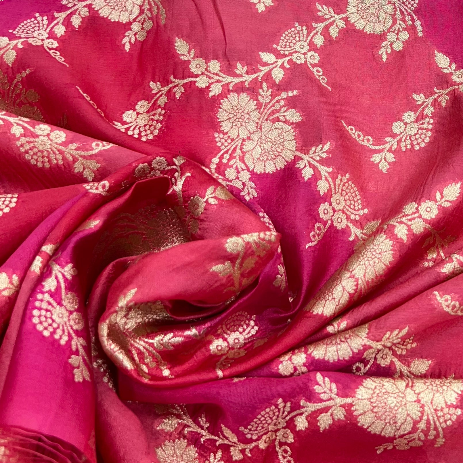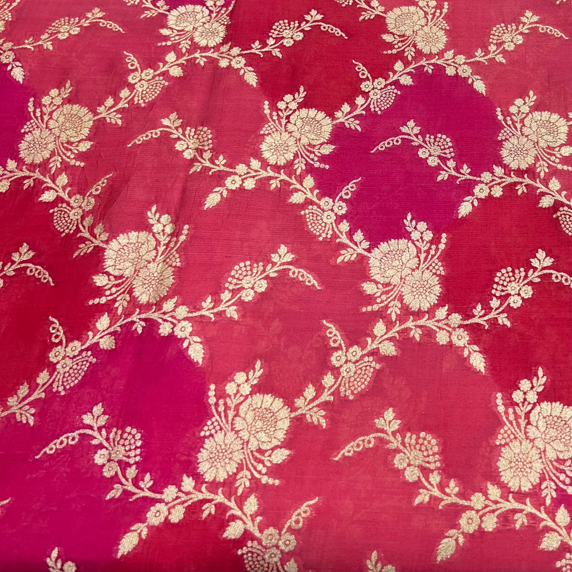 Rani Pink & Red Floral Jal Zari Silk Brocade