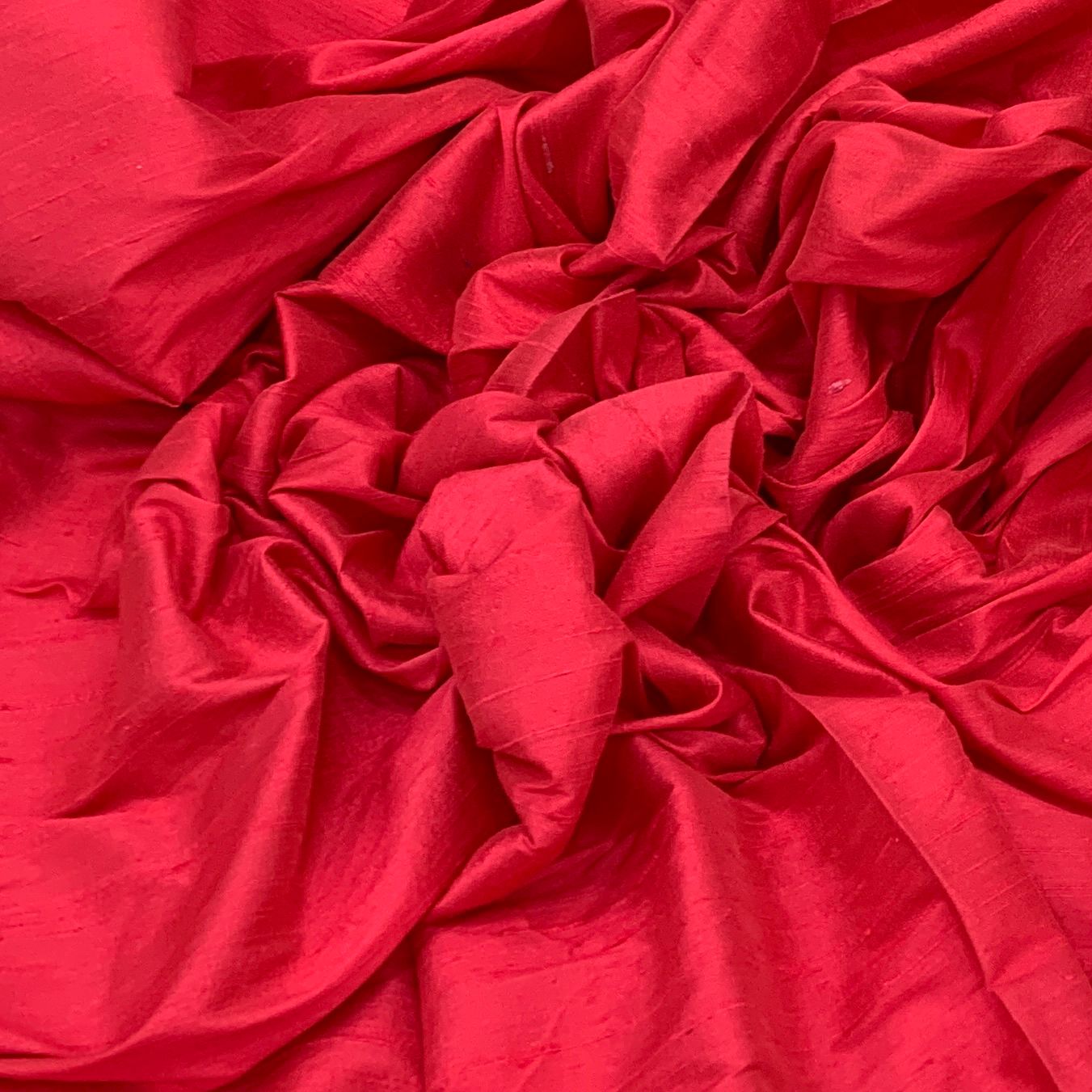 Red Plain Raw Silk Fabric. Continuous filaments of silk, with no twist, which have been reeled from cocoons but are unprocessed and comes with a slub effect. Raw Silk has a nubby feel with a low sheen. It resembles cotton in surface texture and sews easily. When these short fibers are spun into yarns, the resulting yarns have occasional slubs and specks that add to its appeal. Nubs vary between different weaves. Sportier in appearance, Raw Silk has the look of hopsack but is much softer.