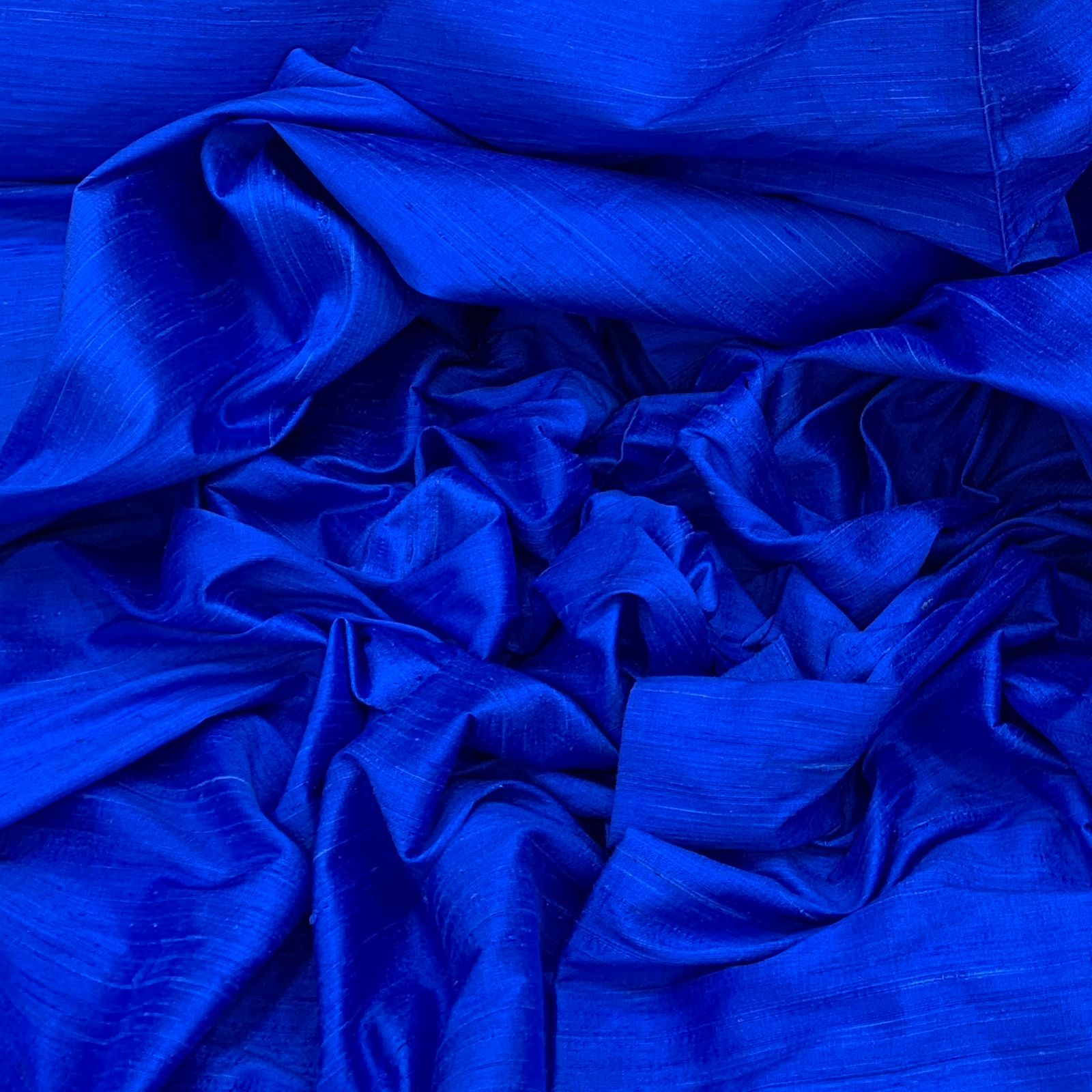 Royal Blue Plain Raw Silk Fabric. Continuous filaments of silk, with no twist, which have been reeled from cocoons but are unprocessed and comes with a slub effect. Raw Silk has a nubby feel with a low sheen. It resembles cotton in surface texture and sews easily. When these short fibers are spun into yarns, the resulting yarns have occasional slubs and specks that add to its appeal. Nubs vary between different weaves. Sportier in appearance, Raw Silk has the look of hopsack but is much softer.