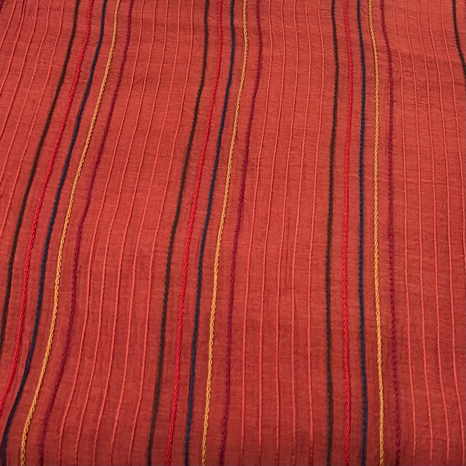 Rust Orange Multicolour Stripes Mul Chanderi Embroidery