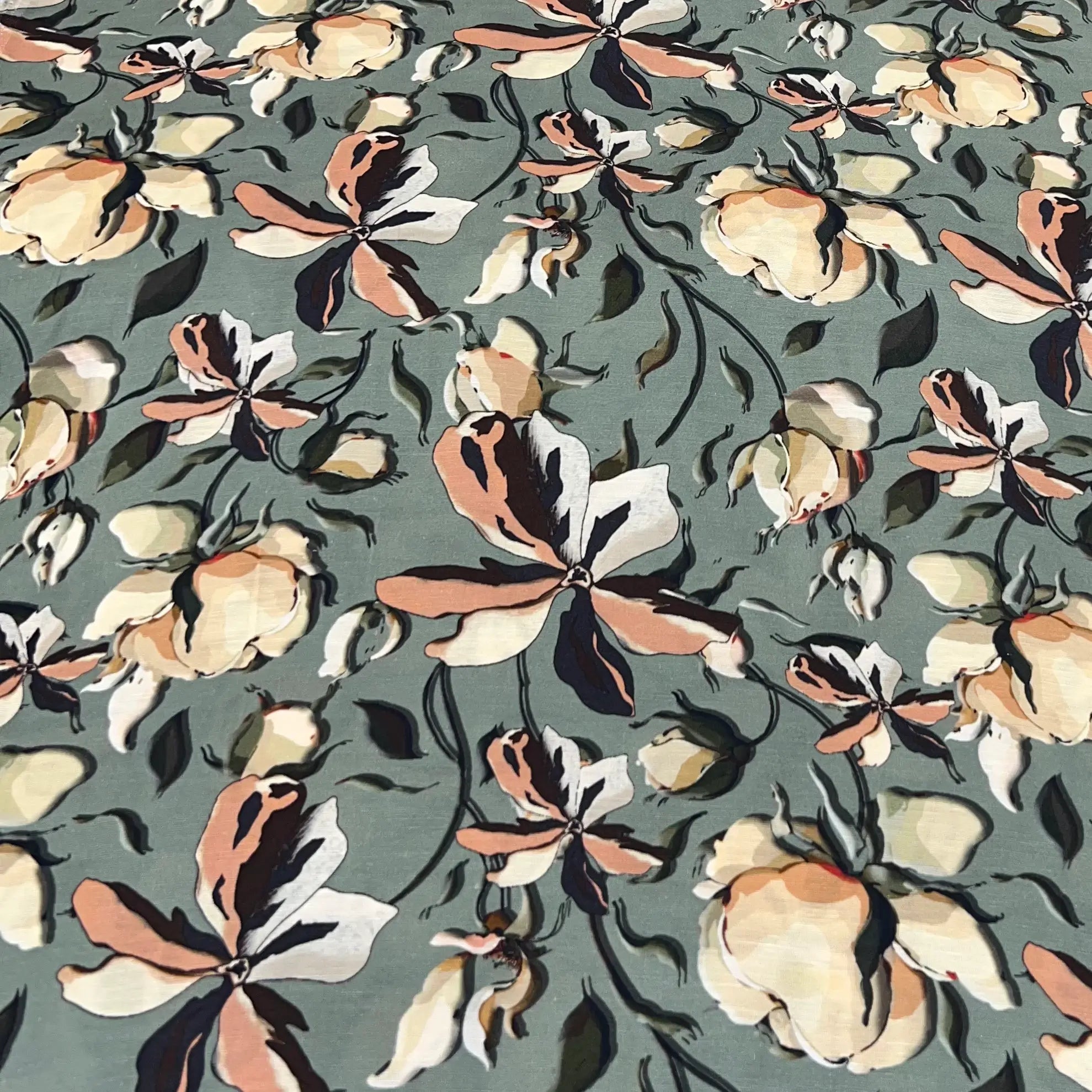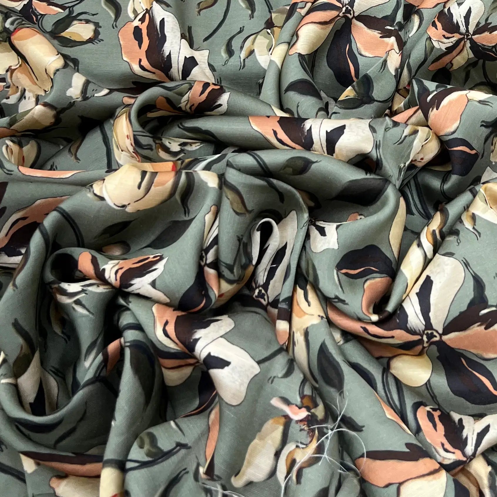 Sage Green Floral Linen Satin Printed