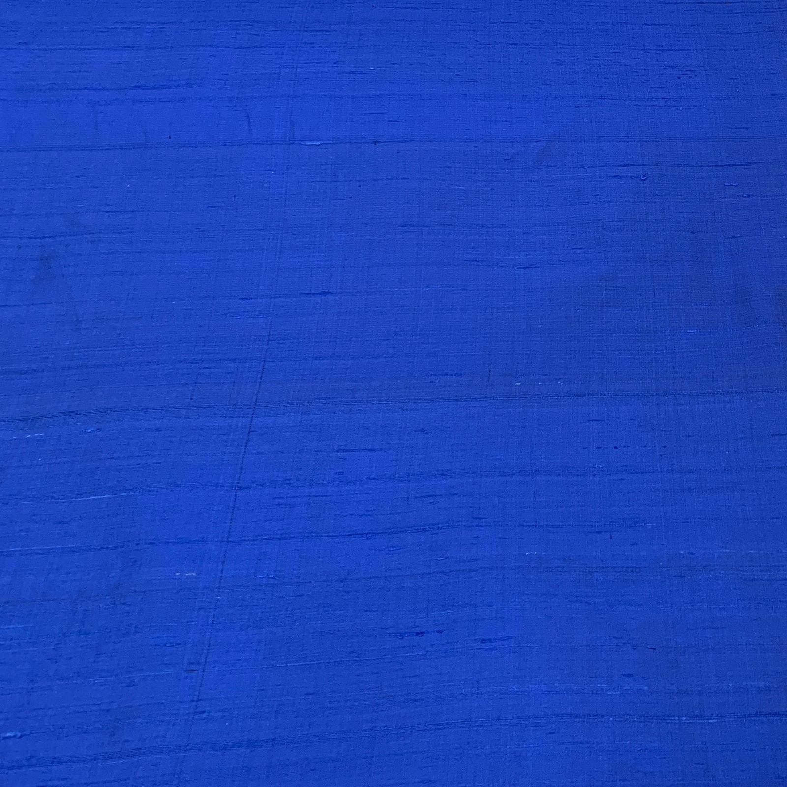 Saphire Blue Plain Raw Silk Fabric. Continuous filaments of silk, with no twist, which have been reeled from cocoons but are unprocessed and comes with a slub effect. Raw Silk has a nubby feel with a low sheen. It resembles cotton in surface texture and sews easily. When these short fibers are spun into yarns, the resulting yarns have occasional slubs and specks that add to its appeal. Nubs vary between different weaves. Sportier in appearance, Raw Silk has the look of hopsack but is much softer.