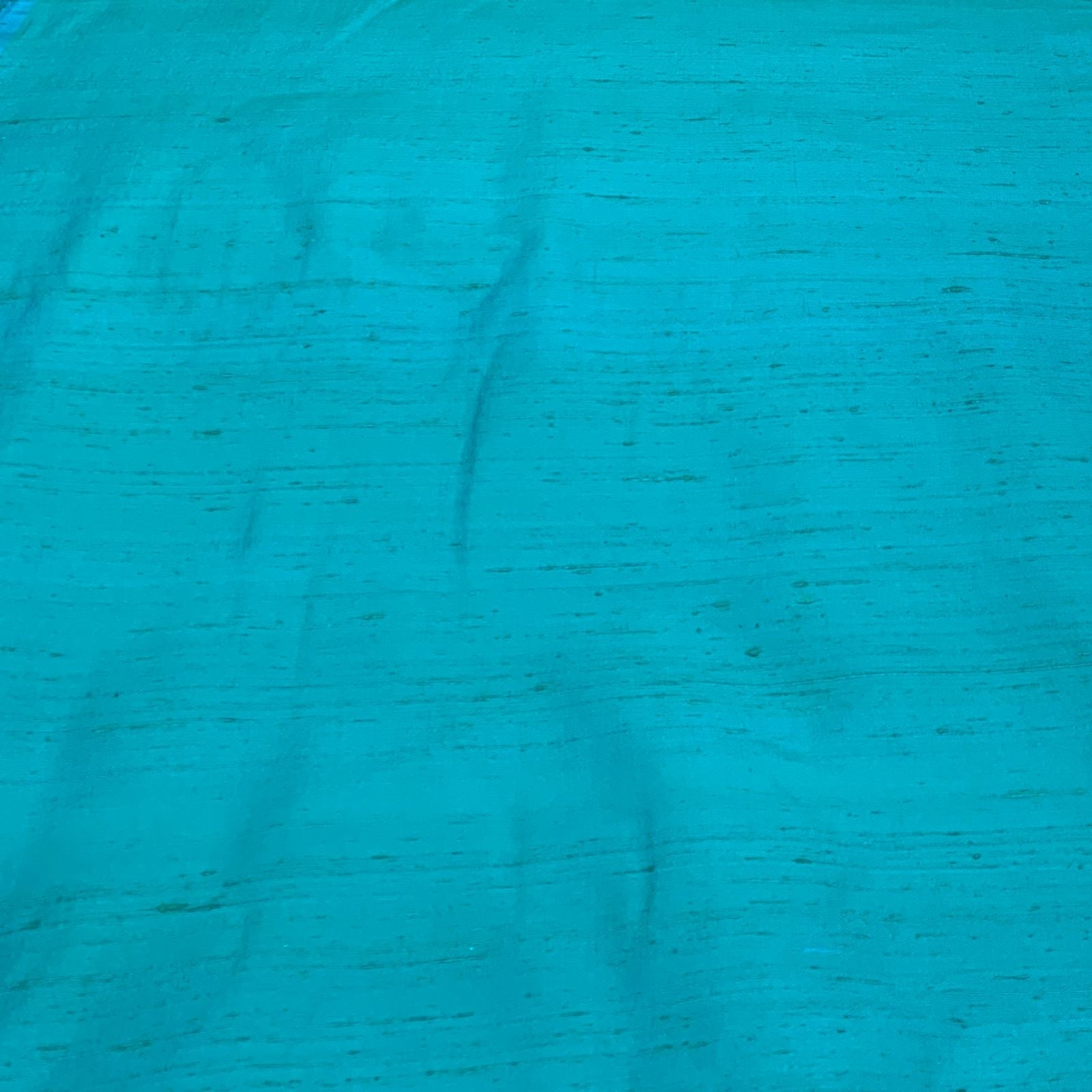 Sea Blue Plain Raw Silk Fabric. Continuous filaments of silk, with no twist, which have been reeled from cocoons but are unprocessed and comes with a slub effect. Raw Silk has a nubby feel with a low sheen. It resembles cotton in surface texture and sews easily. When these short fibers are spun into yarns, the resulting yarns have occasional slubs and specks that add to its appeal. Nubs vary between different weaves. Sportier in appearance, Raw Silk has the look of hopsack but is much softer.