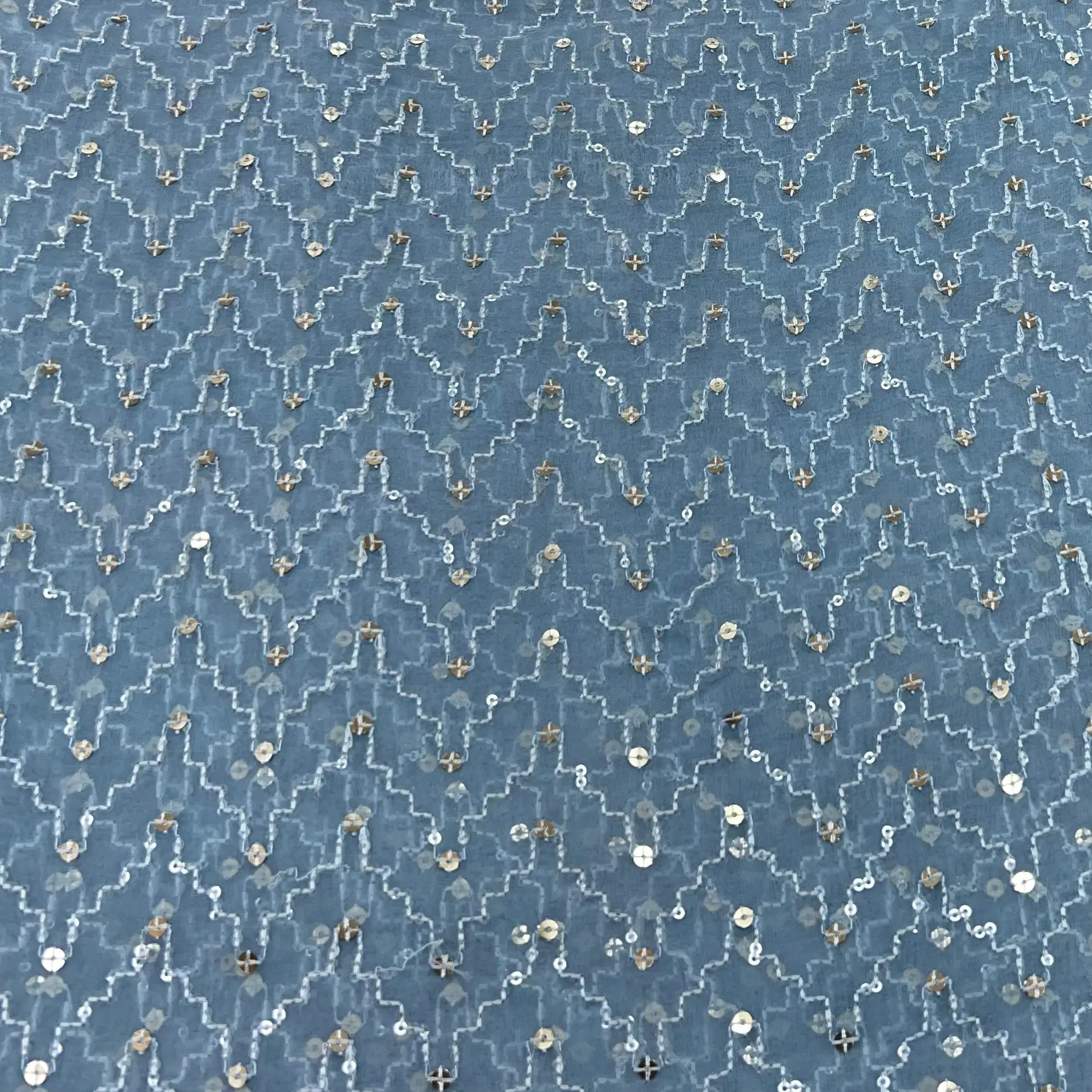 Sky Blue Wave Sequins & Thread Organza Embroidery
