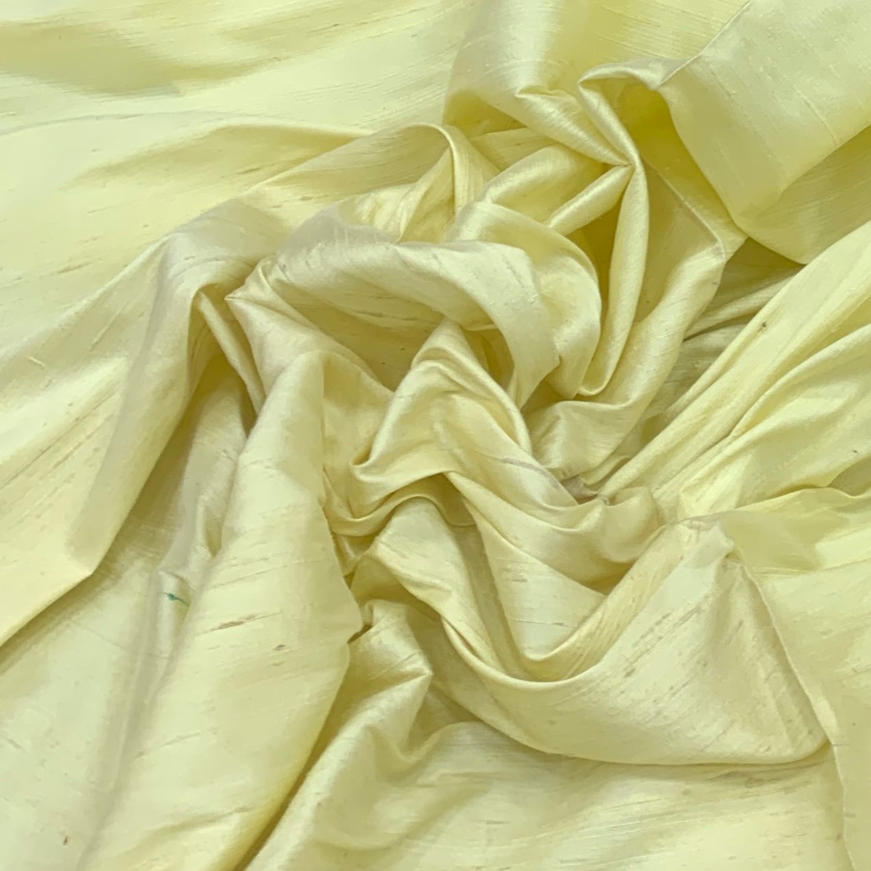 Tan Yellow Plain Raw Silk Fabric. Continuous filaments of silk, with no twist, which have been reeled from cocoons but are unprocessed and comes with a slub effect. Raw Silk has a nubby feel with a low sheen. It resembles cotton in surface texture and sews easily. When these short fibers are spun into yarns, the resulting yarns have occasional slubs and specks that add to its appeal. Nubs vary between different weaves. Sportier in appearance, Raw Silk has the look of hopsack but is much softer.