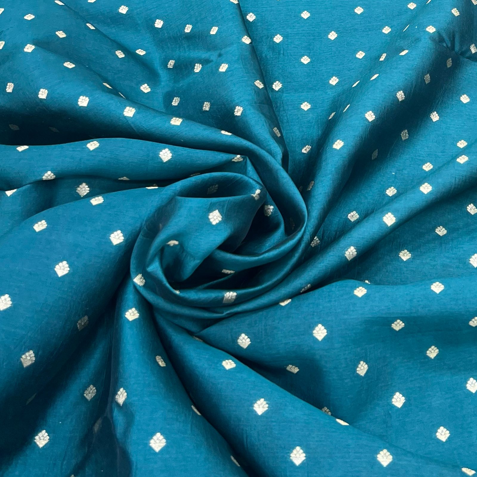 Silk brocade is an opulent fabric crafted with elaborate designs in silk and metallic threads, creating a richly textured surface. Celebrated for its durability and majestic appeal, it is perfect for sarees, lehengas, sherwanis, jackets, and festive attire, bringing a touch of timeless luxury to every creation