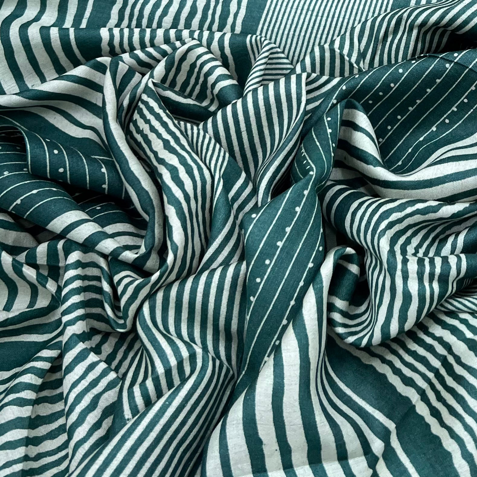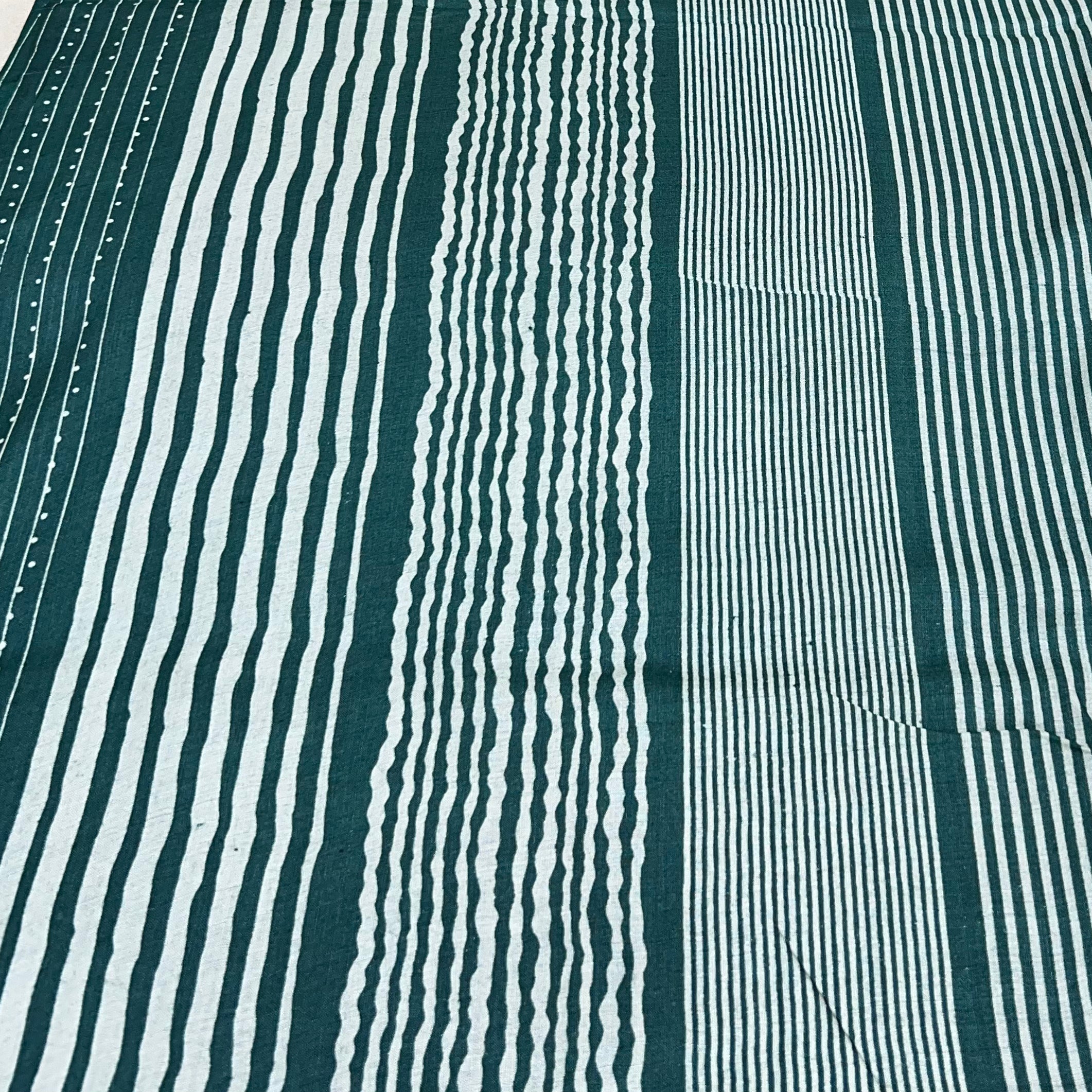Teal Green Stripes Dot Printed Tussar Silk