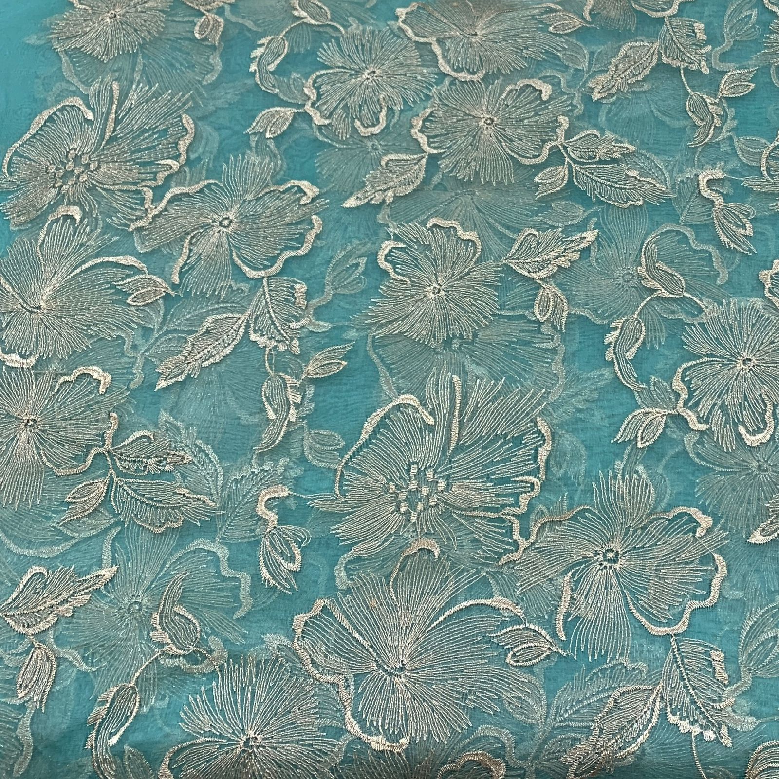 Turquoise Blue Pure Organza Embroidery