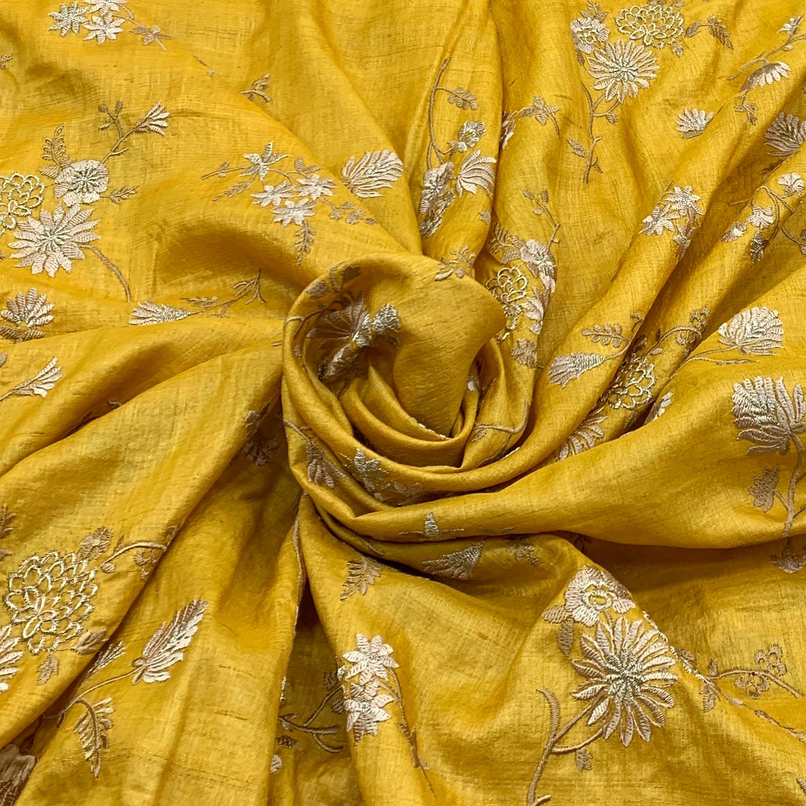 Tussar silk offers a lightweight, breathable feel with a rich texture and natural gold sheen. Its slightly coarse finish adds rustic charm, making it perfect for sarees, kurtas, tailored jackets, sherwanis and bandis
