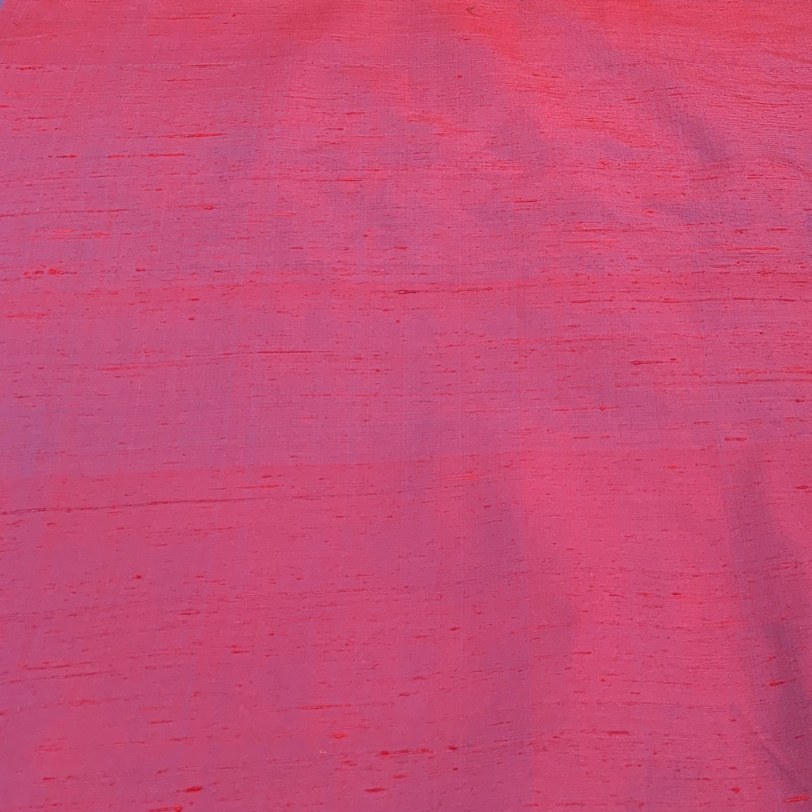 Two Tone Maroon Plain Raw Silk Fabric. Continuous filaments of silk, with no twist, which have been reeled from cocoons but are unprocessed and comes with a slub effect. Raw Silk has a nubby feel with a low sheen. It resembles cotton in surface texture and sews easily. When these short fibers are spun into yarns, the resulting yarns have occasional slubs and specks that add to its appeal. Nubs vary between different weaves. Sportier in appearance, Raw Silk has the look of hopsack but is much softer.