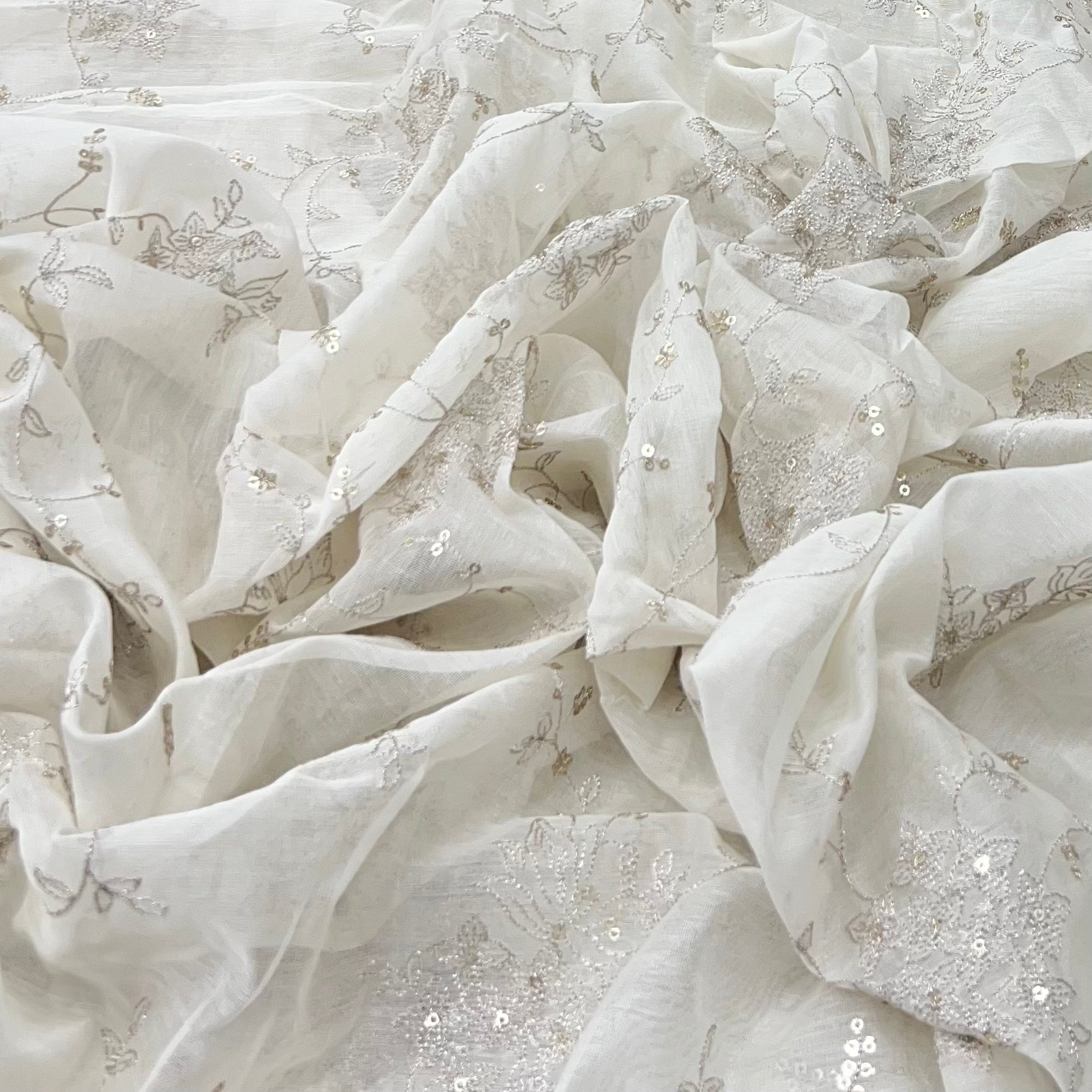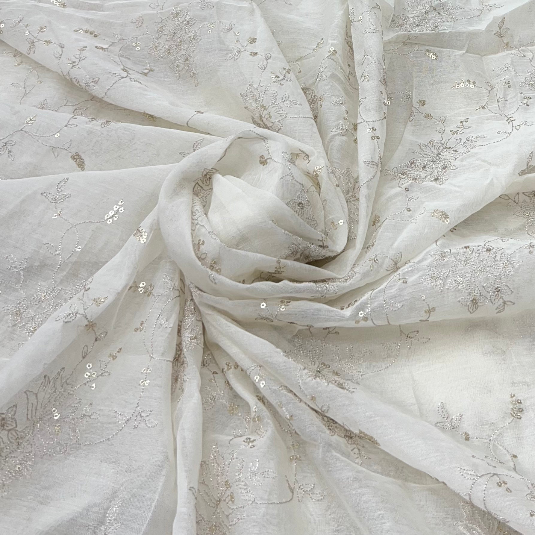 White Floral Mul Chanderi Jal Zari Sequins Embroidery