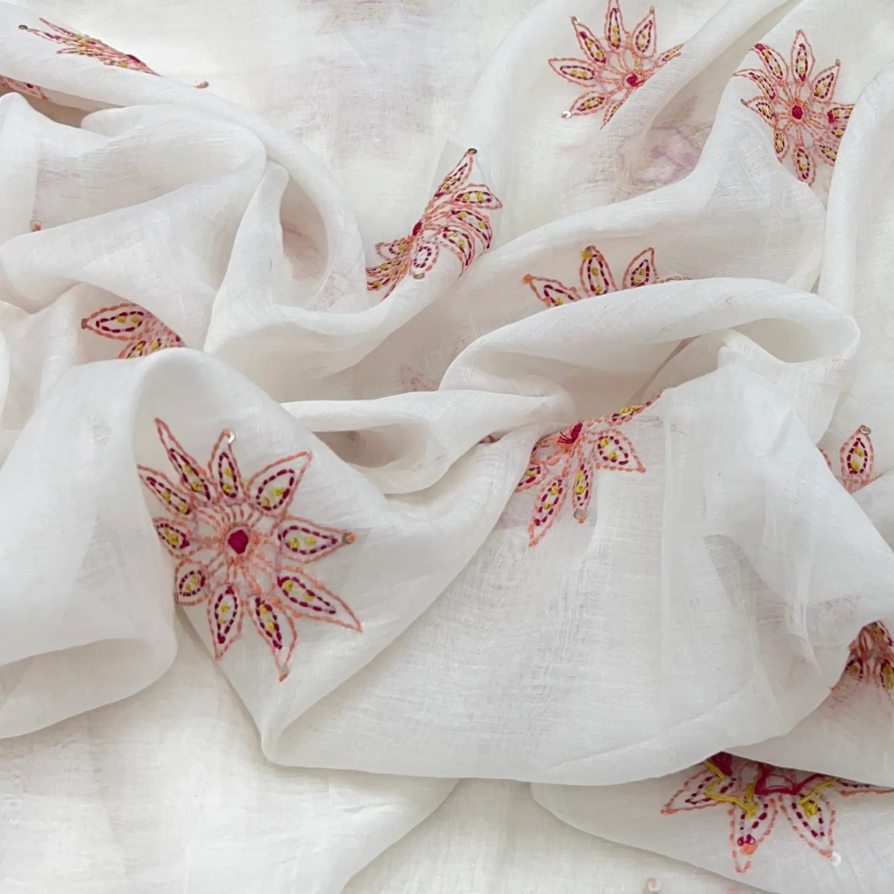 White Flower Butta Thread & Sequins Mul Chanderi Embroidery