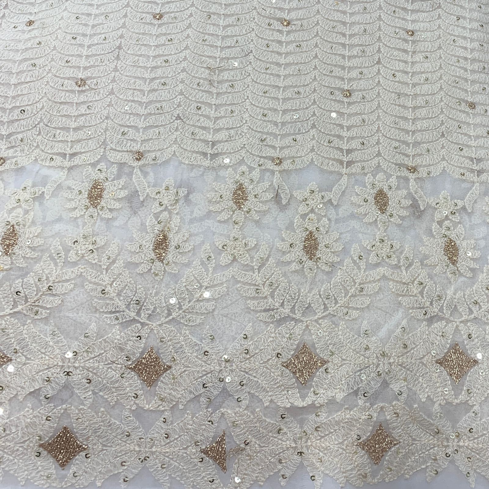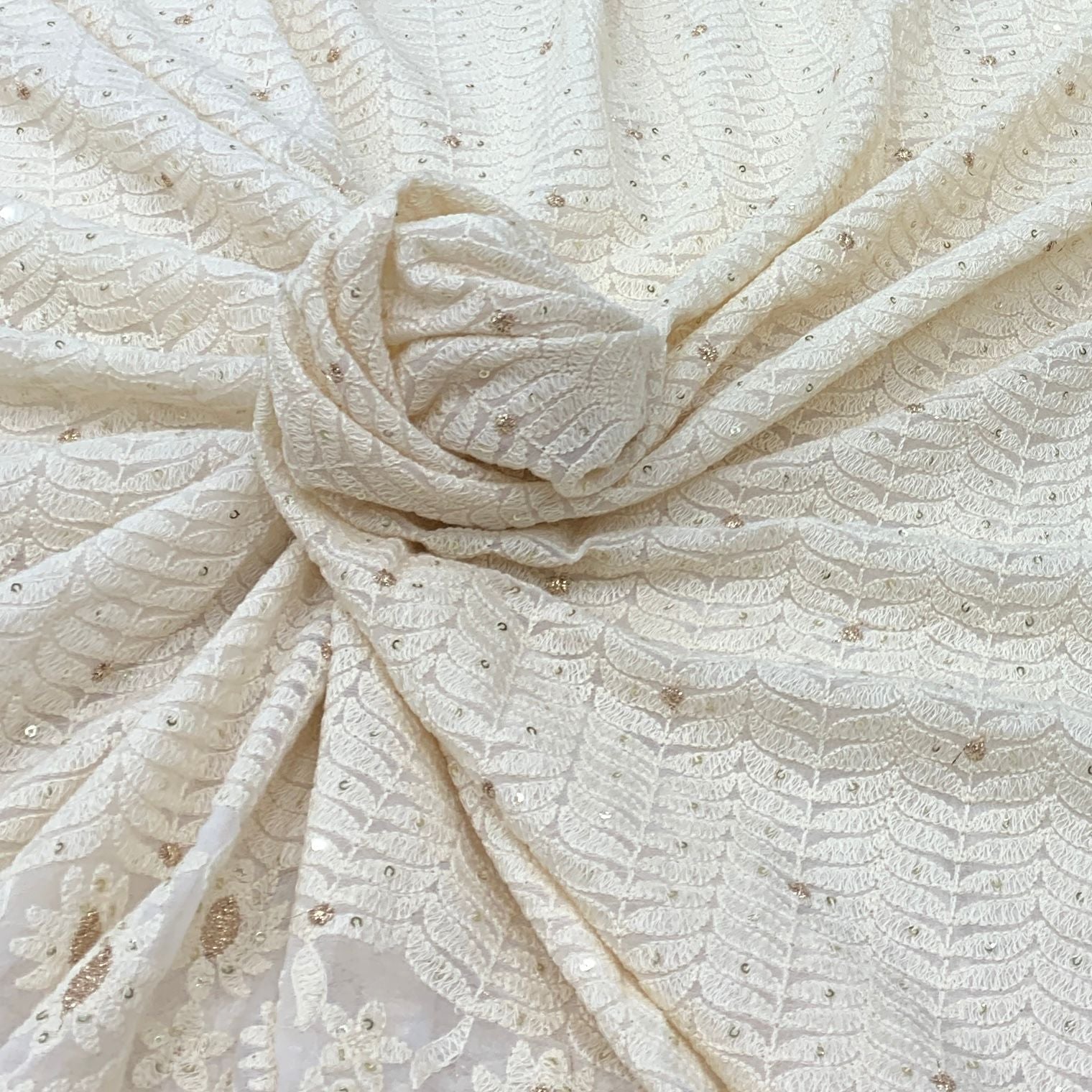 Georgette embroidered fabric is lightweight, flowy, and stylish, perfect for both men's and women's fashion. Ideal for sarees, gowns, lehengas, kurtis, dupattas, sherwanis, and jackets, its soft drape adds elegance, making it a refined choice for weddings, festivals, and special occasions