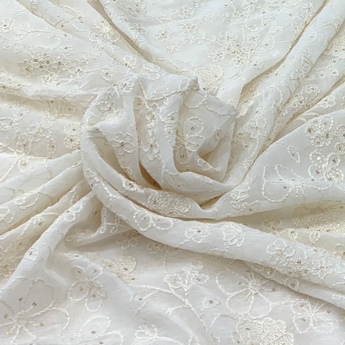 Georgette embroidered fabric is lightweight, flowy, and stylish, perfect for both men's and women's fashion. Ideal for sarees, gowns, lehengas, kurtis, dupattas, sherwanis, and jackets, its soft drape adds elegance, making it a refined choice for weddings, festivals, and special occasions