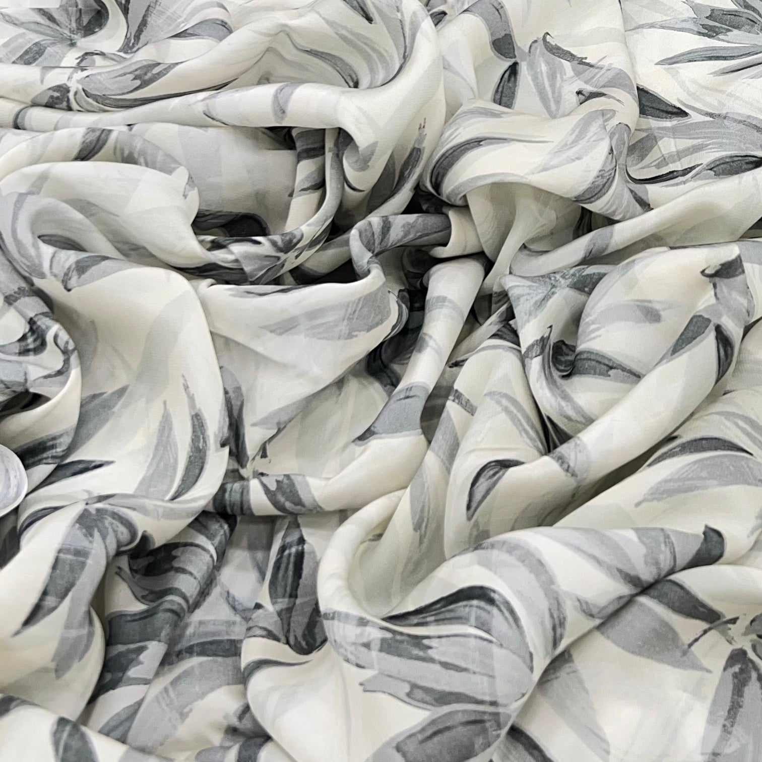 Crepe cutwork fabric features a lightweight, textured crepe base adorned with intricate cut-out patterns, creating a delicate, semi-sheer effect. Its elegant drape and detailed craftsmanship make it perfect for stylish apparel, sophisticated overlays, and statement pieces