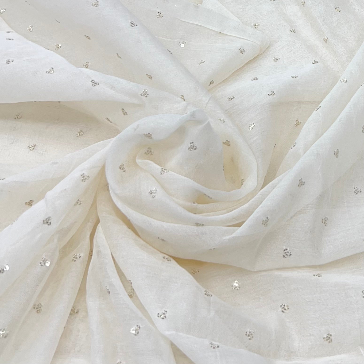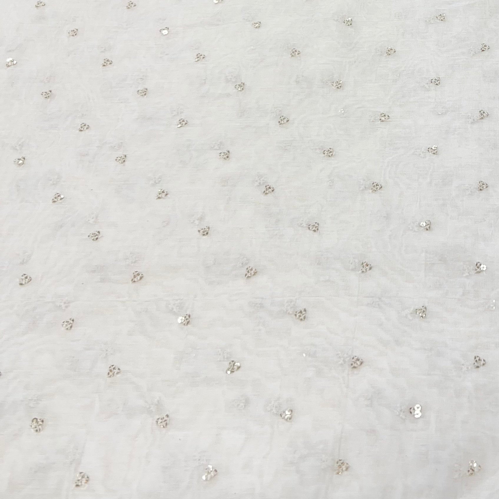White Mul Chanderi Tikki Sequins Thread Embroidery