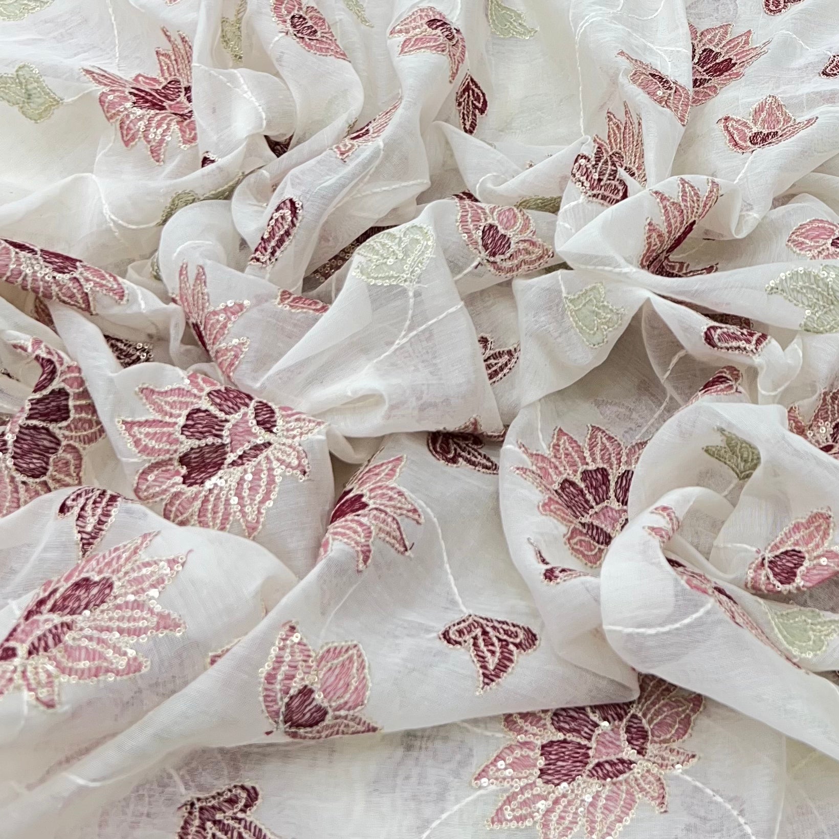 White Multicolor Mul Chanderi Sequins Thread Jal Embroidery