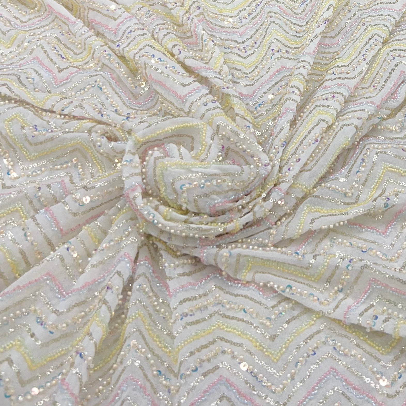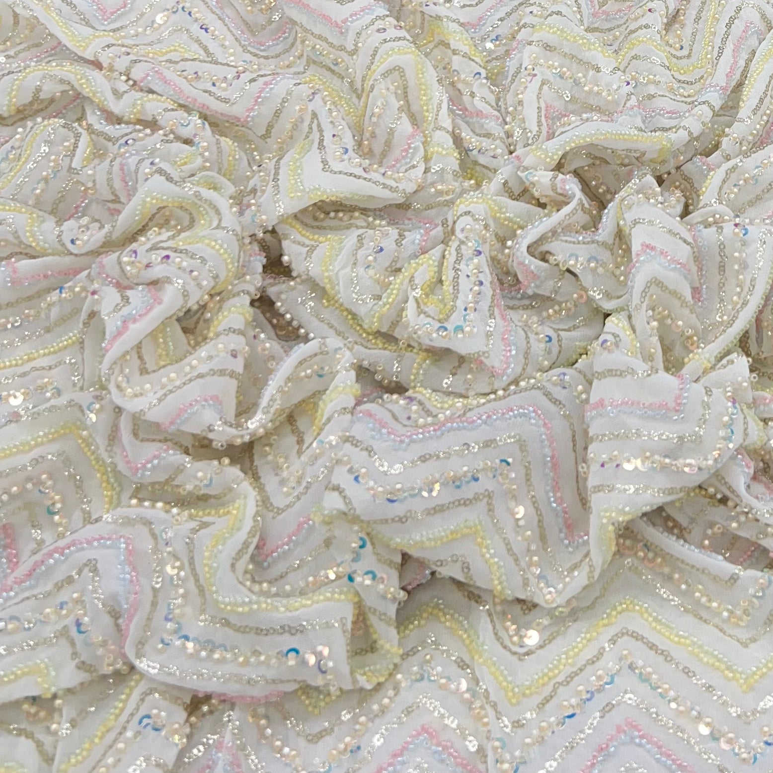 Georgette embroidered fabric is lightweight, flowy, and stylish, perfect for both men's and women's fashion. Ideal for sarees, gowns, lehengas, kurtis, dupattas, sherwanis, and jackets, its soft drape adds elegance, making it a refined choice for weddings, festivals, and special occasions