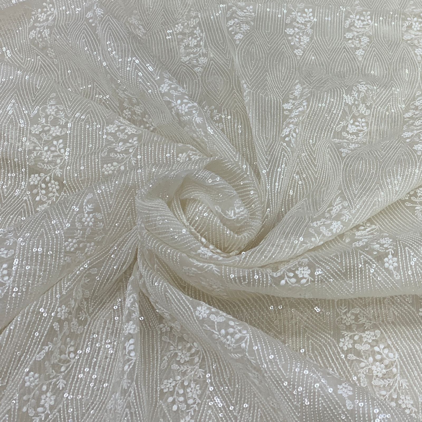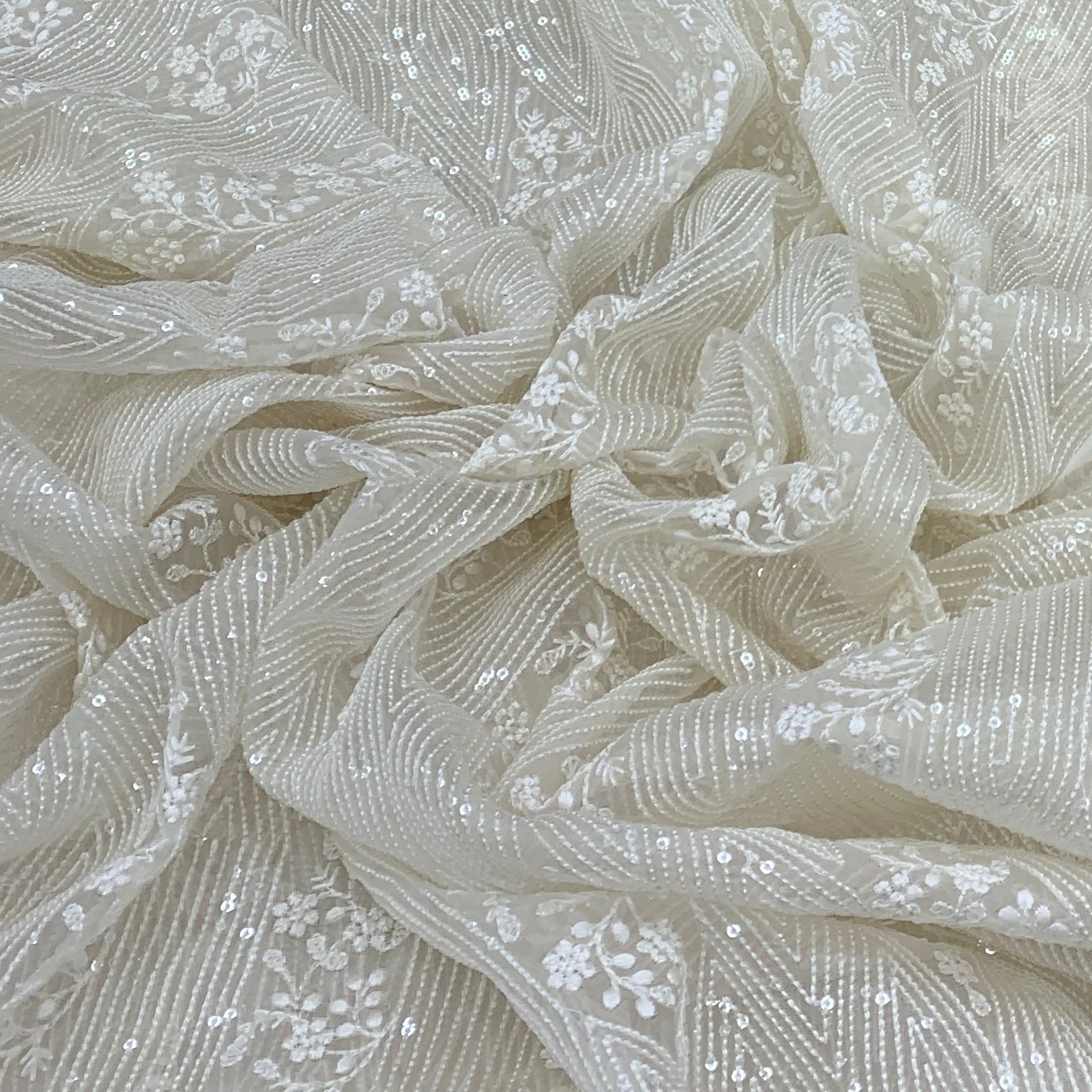 Organza is a lightweight, sheer fabric with a crisp finish, perfect for creating elegant sarees, gowns, and couture designs. Its subtle transparency and fine texture bring a refined, luxurious touch to any ensemble