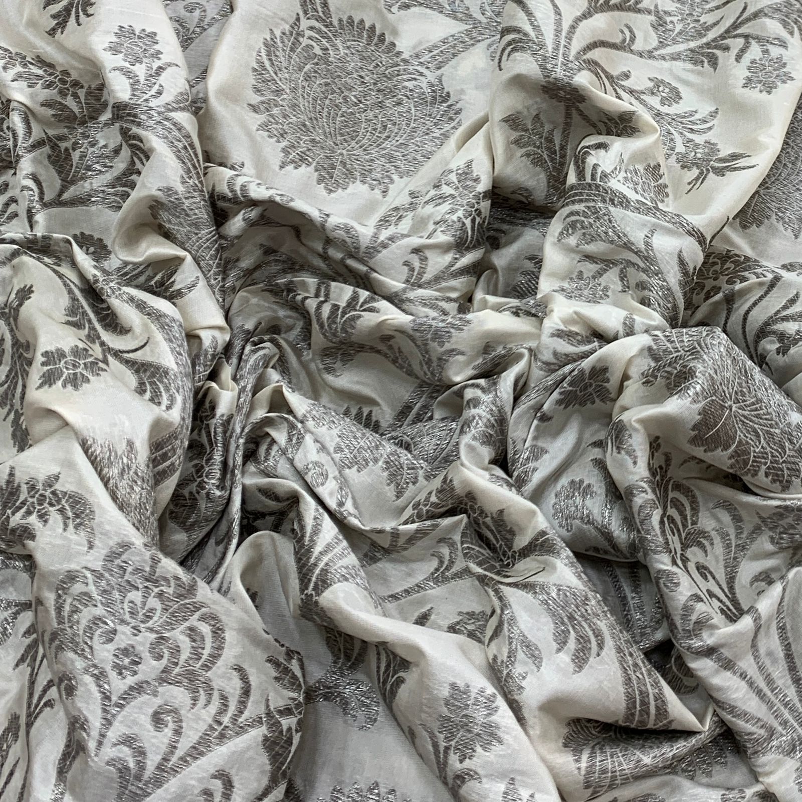 Originally crafted from silk, silk brocade is a lustrous, high-quality woven fabric featuring intricate designs and patterns