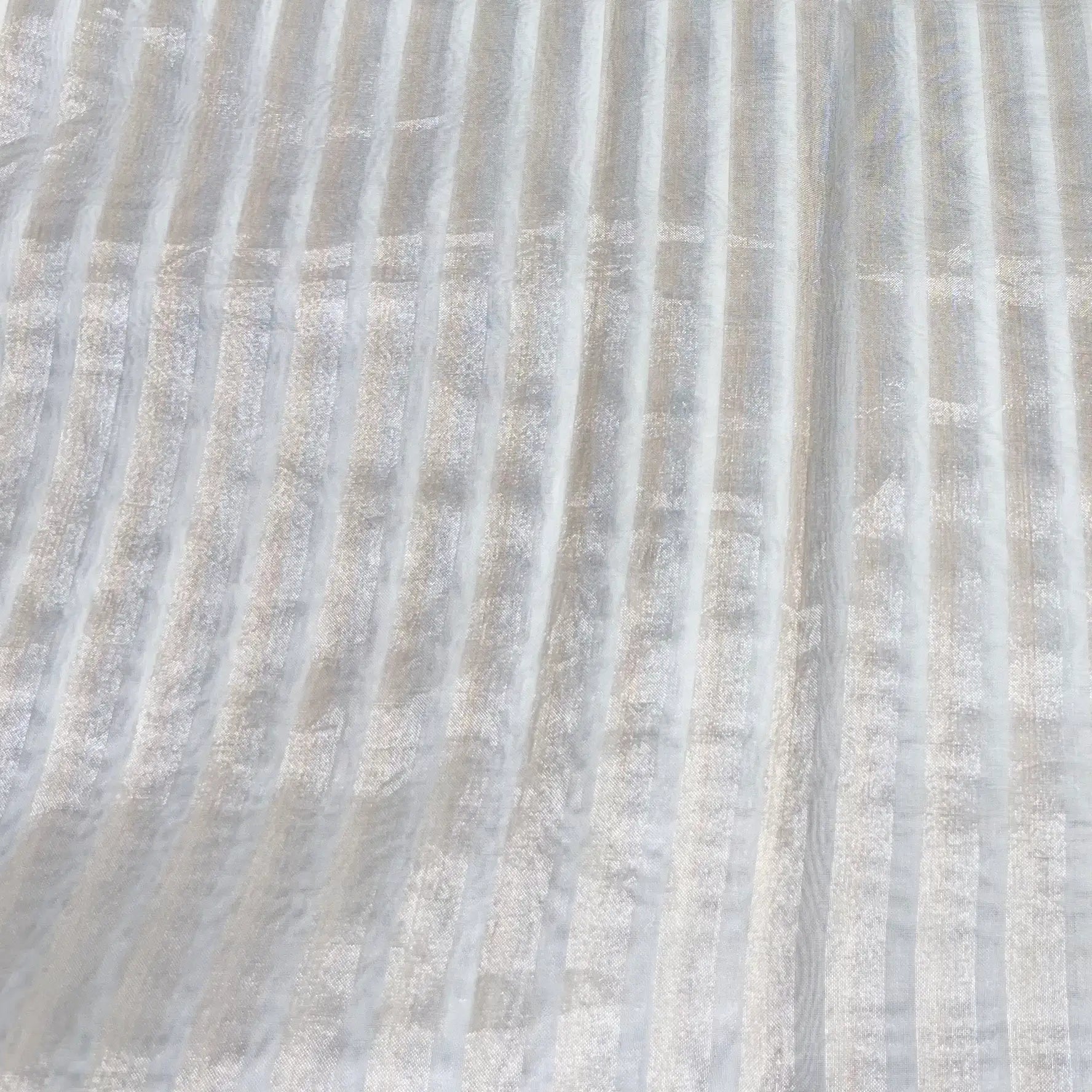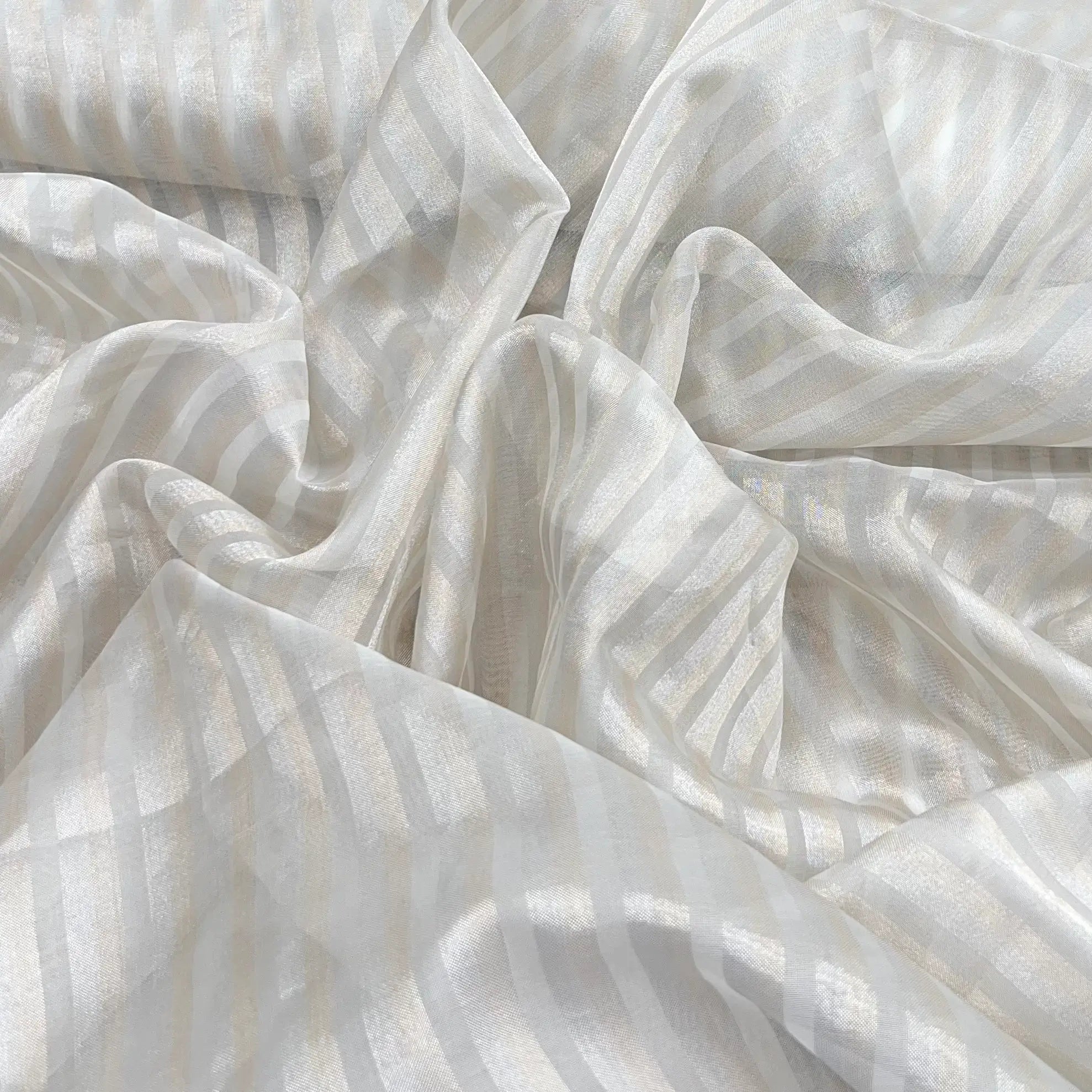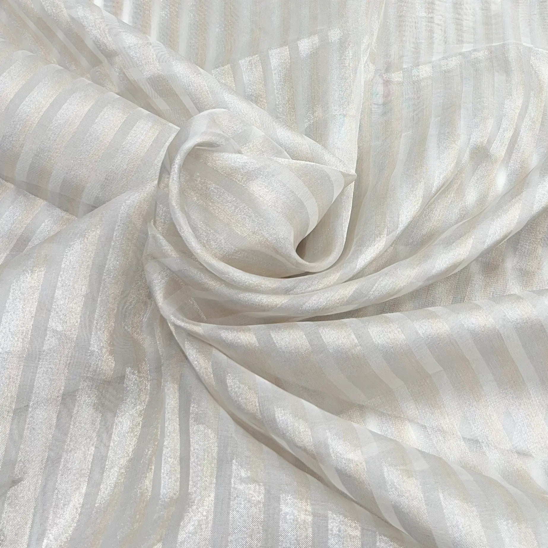 White Silver & Gold Stripe Zari Tissue Organza Brocade