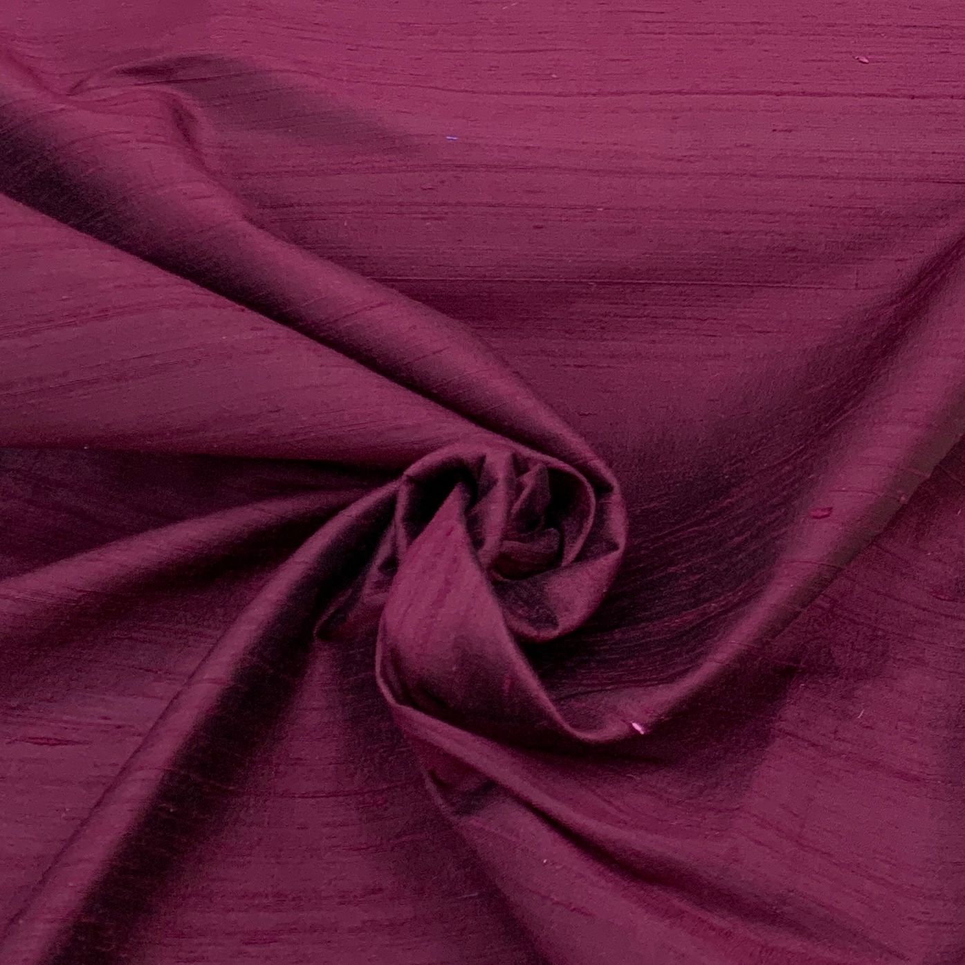 Wine Plain Raw Silk Fabric. Continuous filaments of silk, with no twist, which have been reeled from cocoons but are unprocessed and comes with a slub effect. Raw Silk has a nubby feel with a low sheen. It resembles cotton in surface texture and sews easily. When these short fibers are spun into yarns, the resulting yarns have occasional slubs and specks that add to its appeal. Nubs vary between different weaves. Sportier in appearance, Raw Silk has the look of hopsack but is much softer.