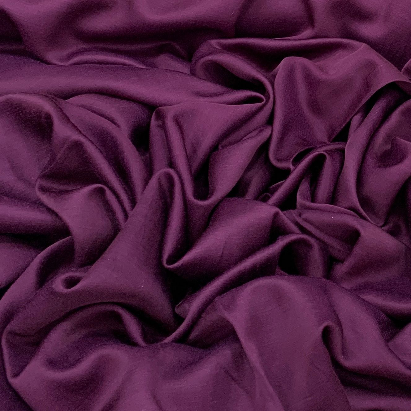 Wine Plain Satin Linen Fabric. Linen being a light breathable fabric with satin having a sheer sheen of glow makes satin linen a beautiful fabric to wear.