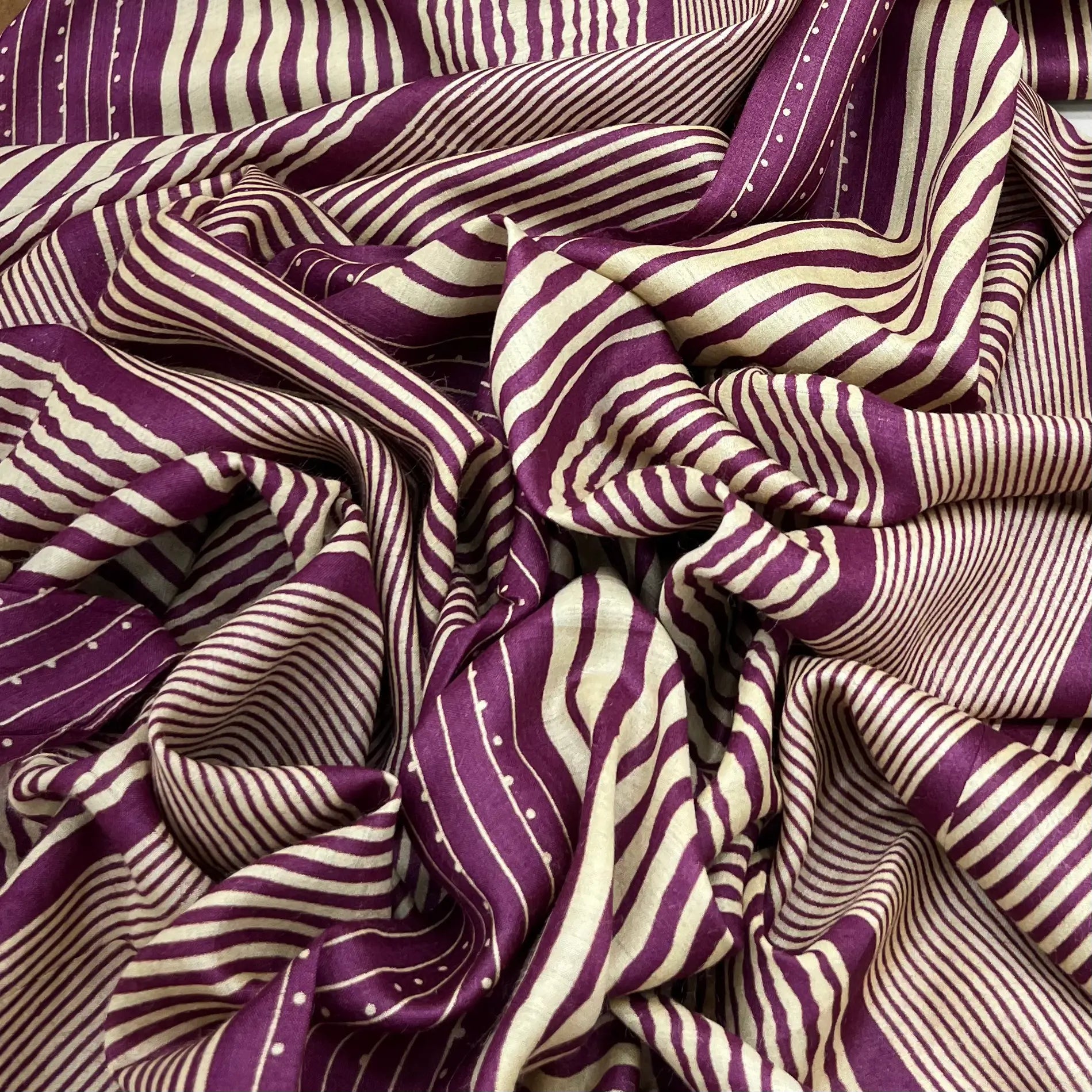 Tussar silk offers a lightweight, breathable feel with a rich texture and natural gold sheen. Its slightly coarse finish adds rustic charm, making it perfect for sarees, kurtas, tailored jackets, sherwanis and bandis