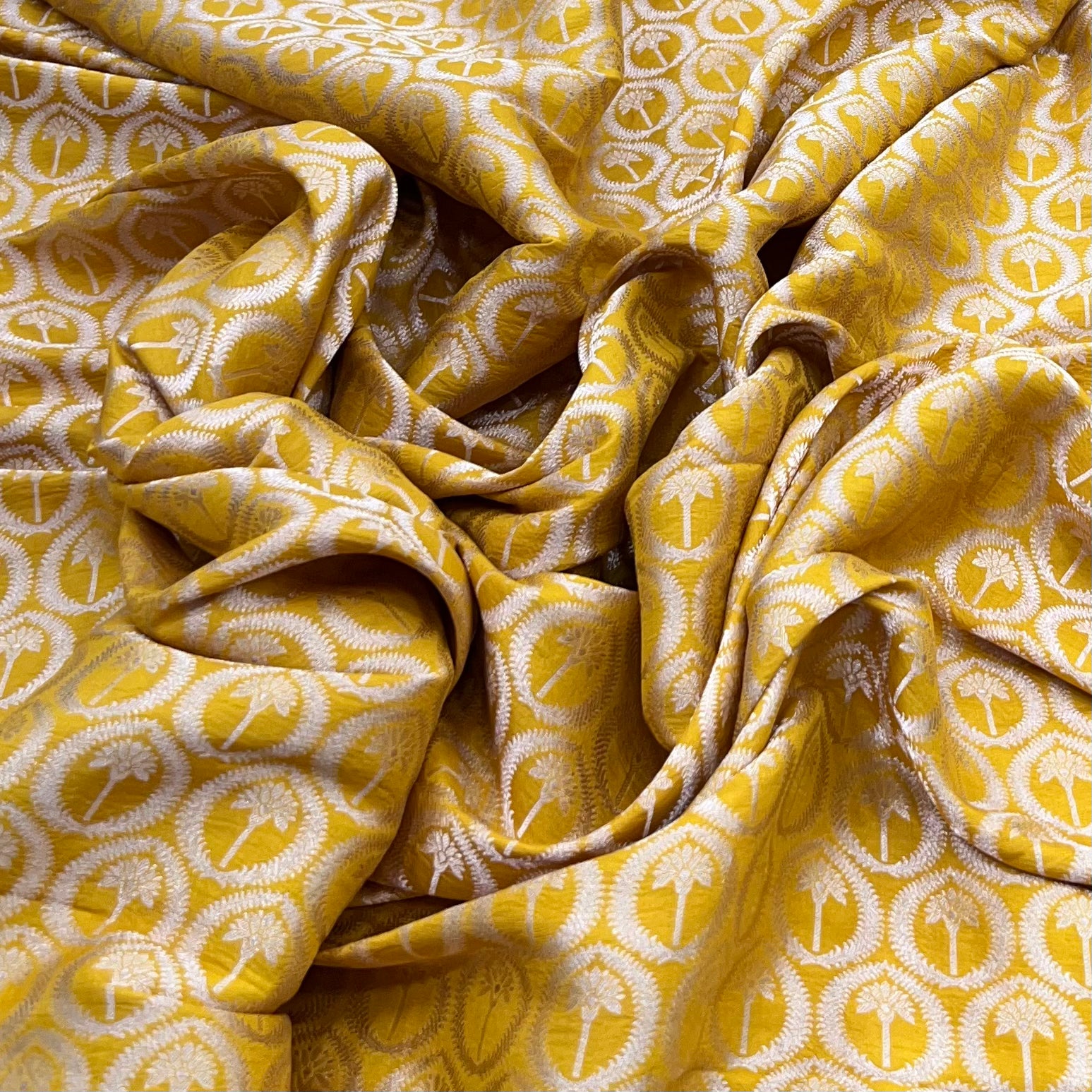Silk brocade is an opulent fabric crafted with elaborate designs in silk and metallic threads, creating a richly textured surface. Celebrated for its durability and majestic appeal, it is perfect for sarees, lehengas, sherwanis, jackets, and festive attire, bringing a touch of timeless luxury to every creation