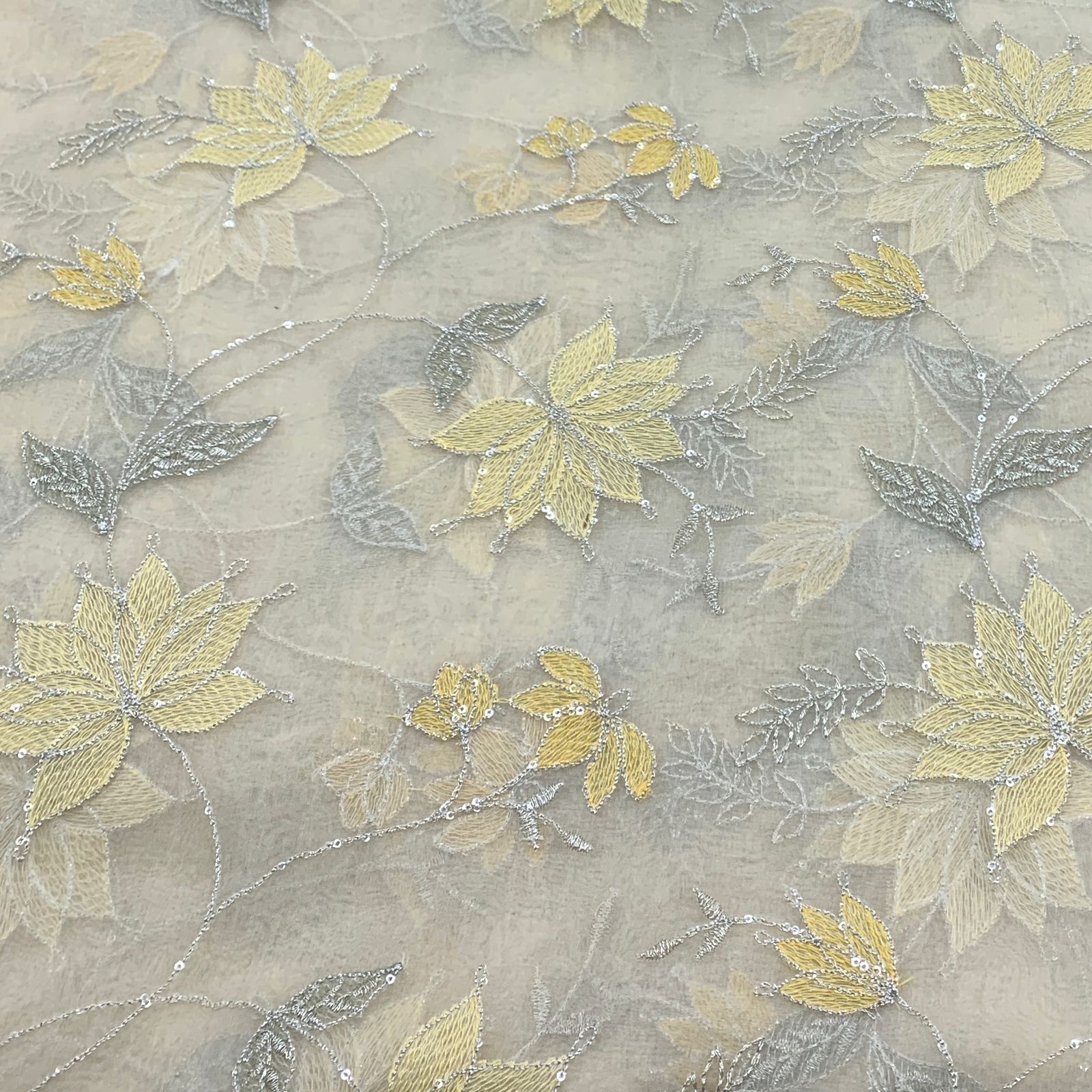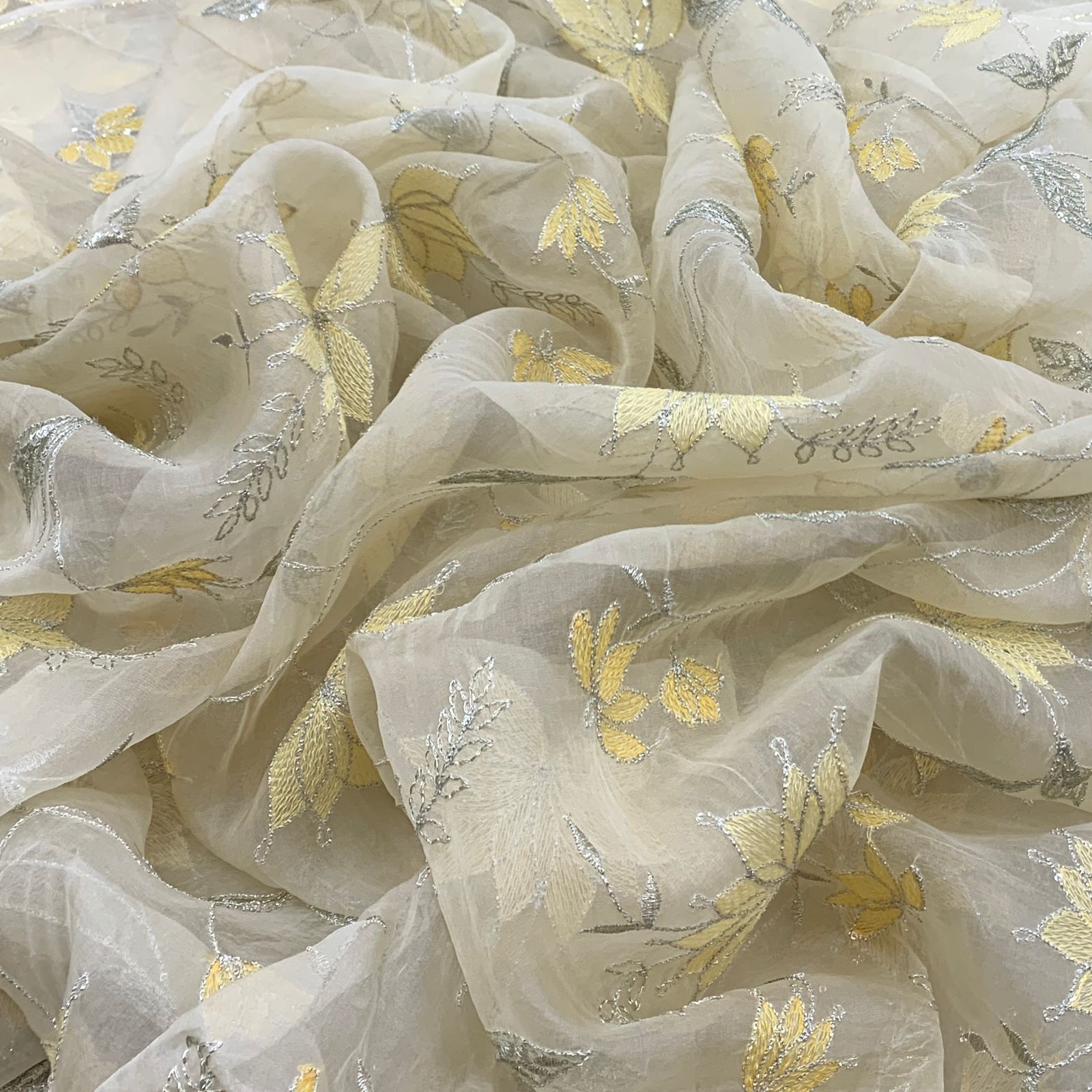 Organza is a lightweight, sheer fabric with a crisp finish, perfect for creating elegant sarees, gowns, and couture designs. Its subtle transparency and fine texture bring a refined, luxurious touch to any ensemble
